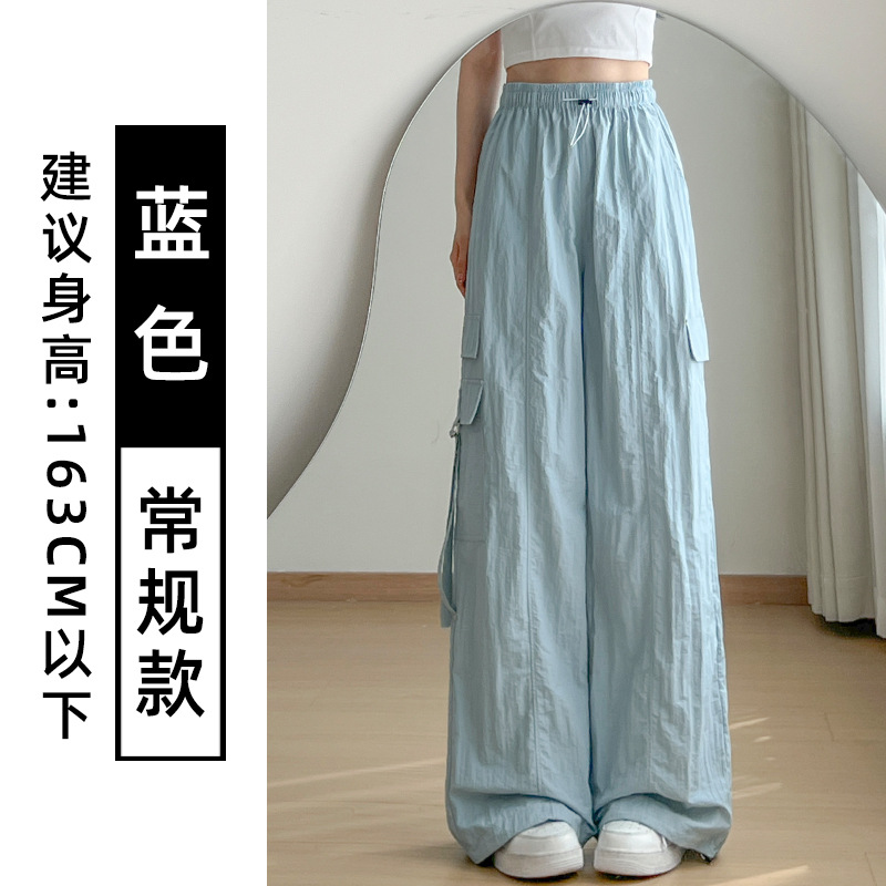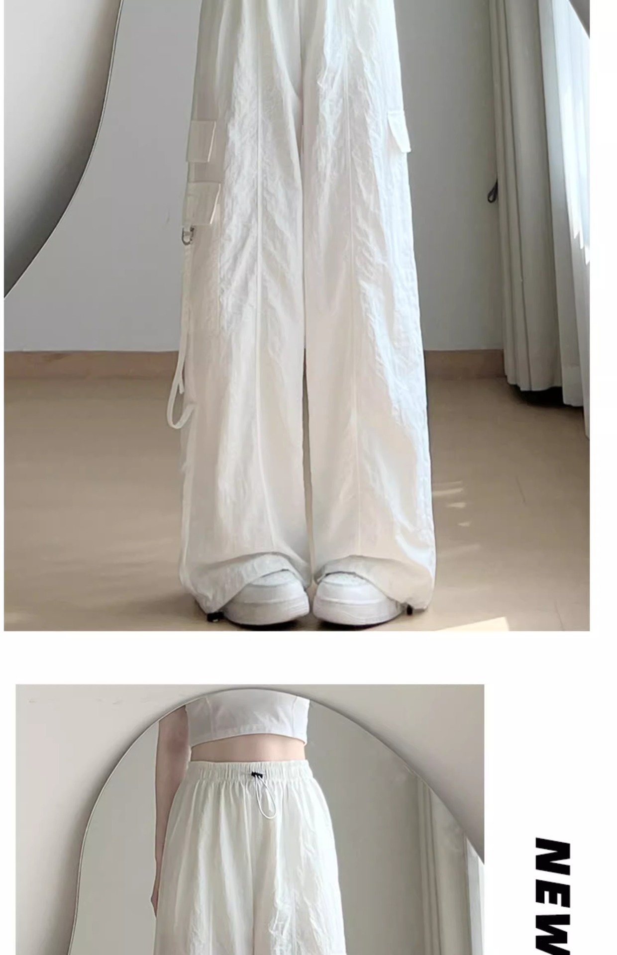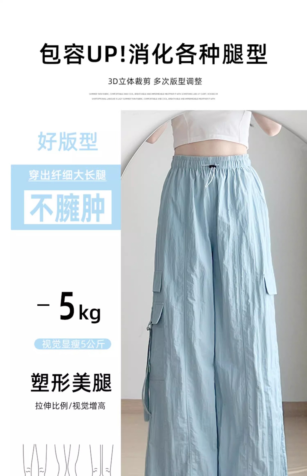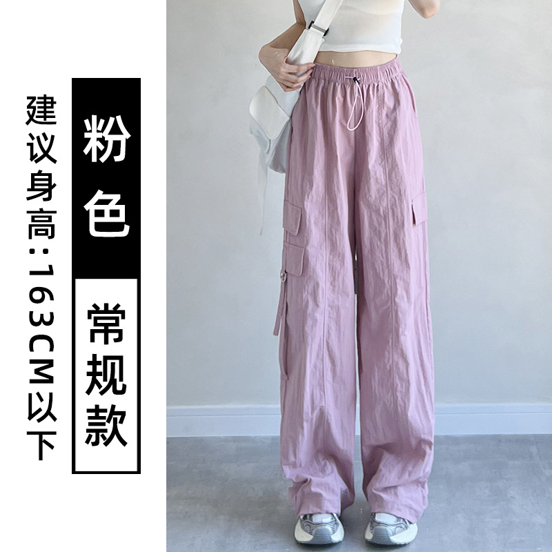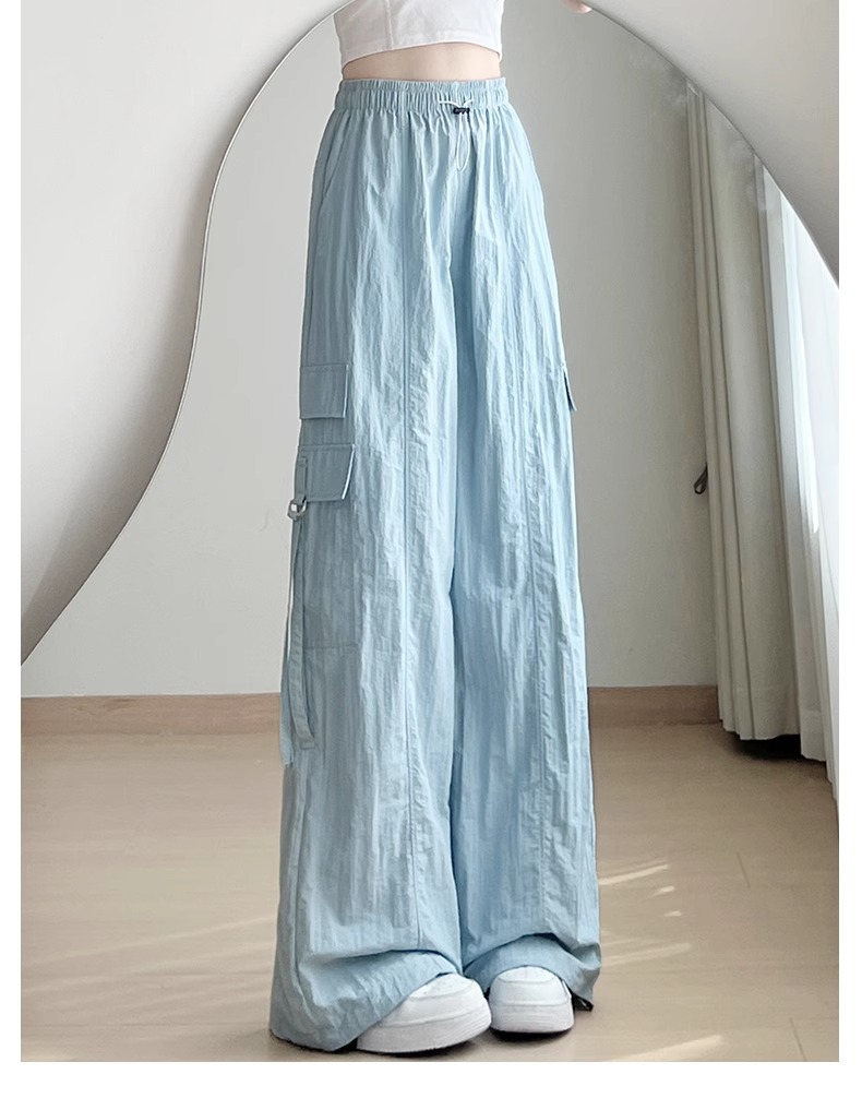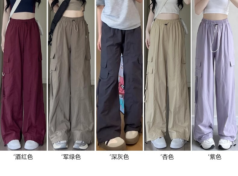 미국 복고풍 군중 바지 여성 여름 2025 새로운 높은 허리 느슨한 드레이 산 등반 빠른 건조 캐주얼 스트레이트 바지스토어 가기
