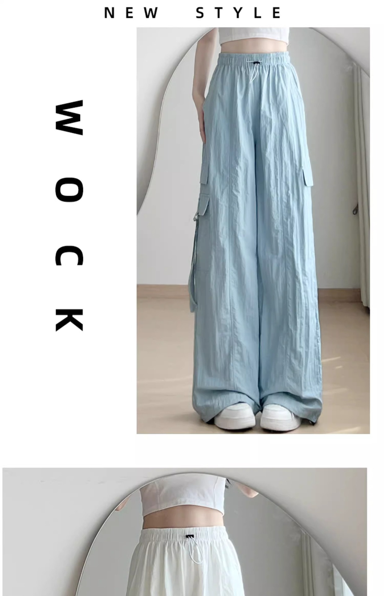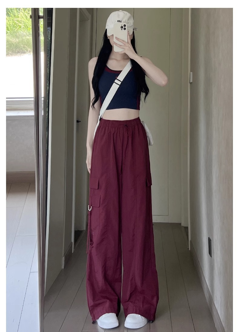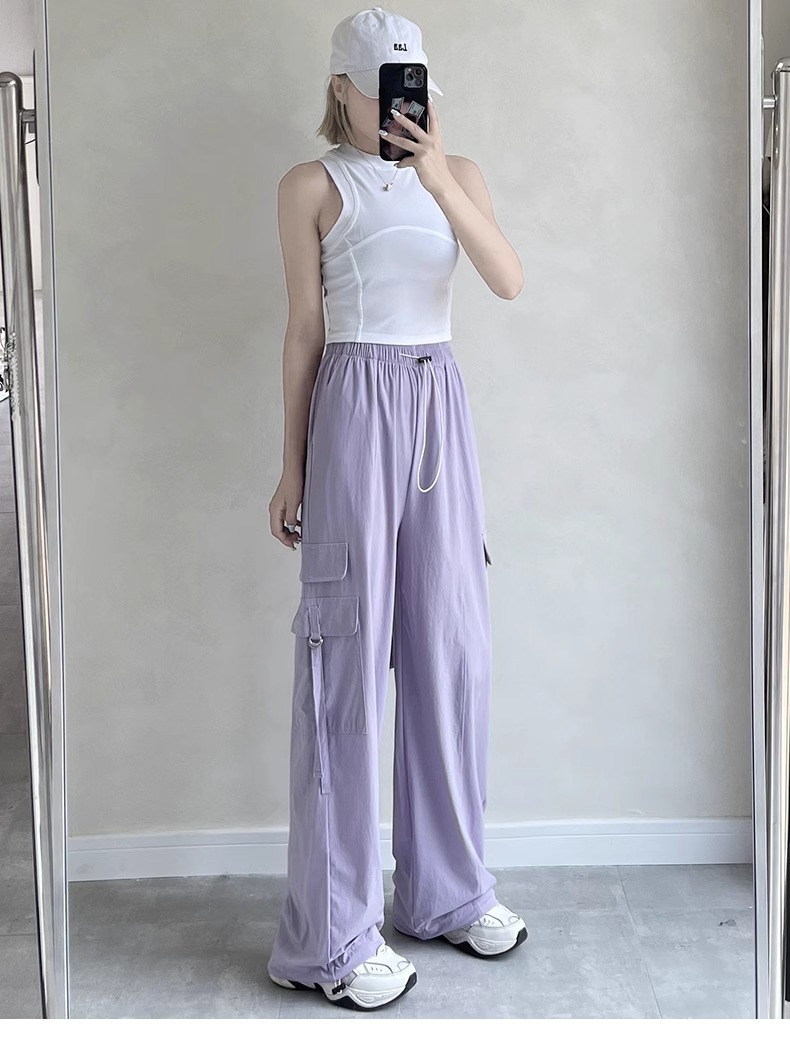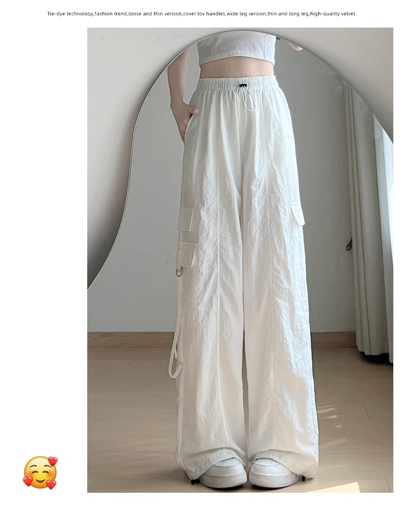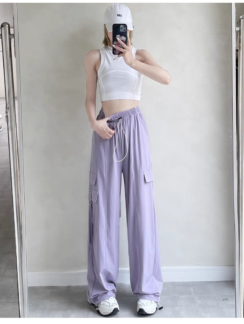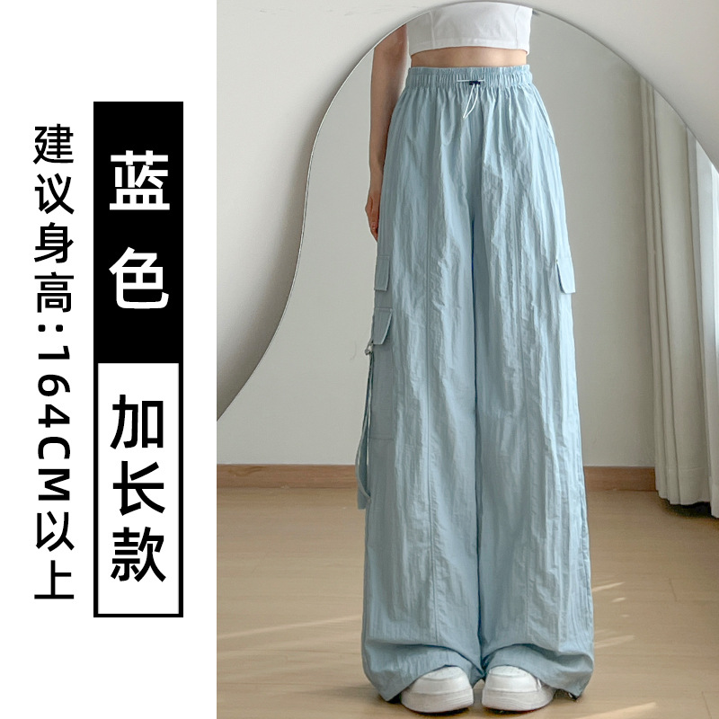 미국 복고풍 군중 바지 여성 여름 2025 새로운 높은 허리 느슨한 드레이 산 등반 빠른 건조 캐주얼 스트레이트 바지스토어 가기