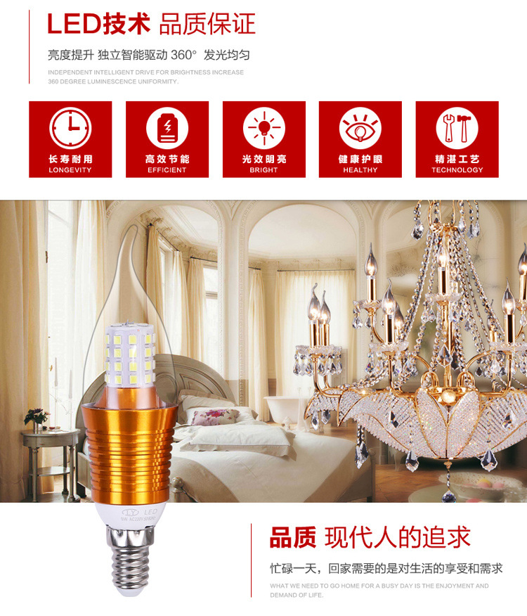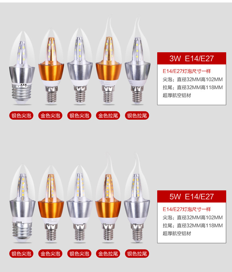 LED 촛불 전구 고휘도 E14 작은 나사 E27 풀 테일 팁 크리스탈 램프 샹들리에 3 색 변경 광원 도매