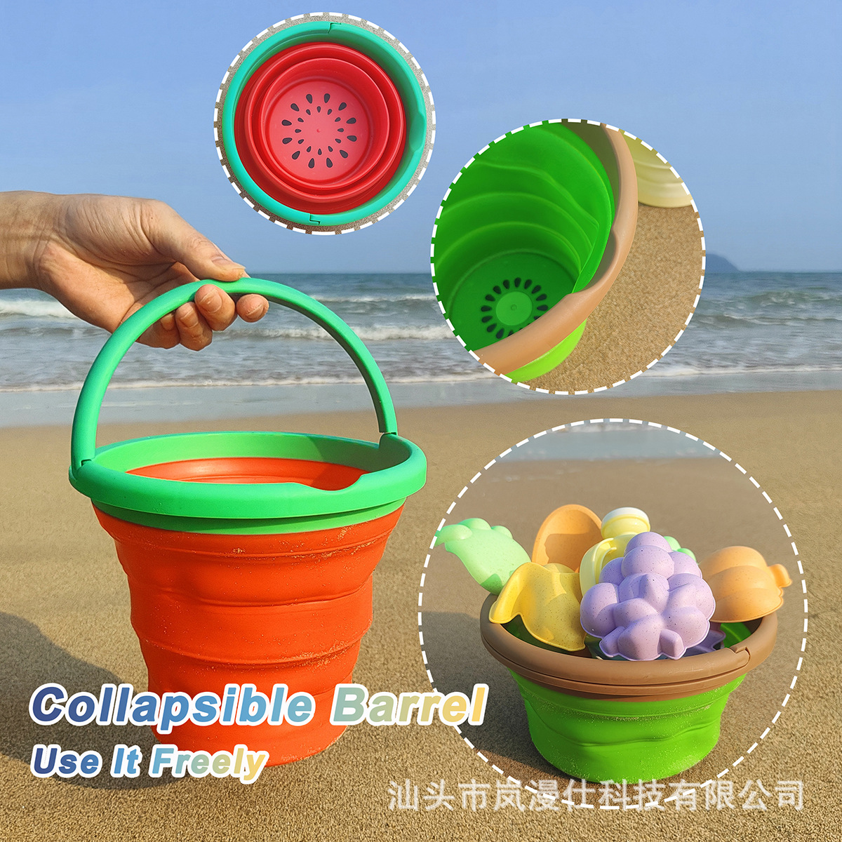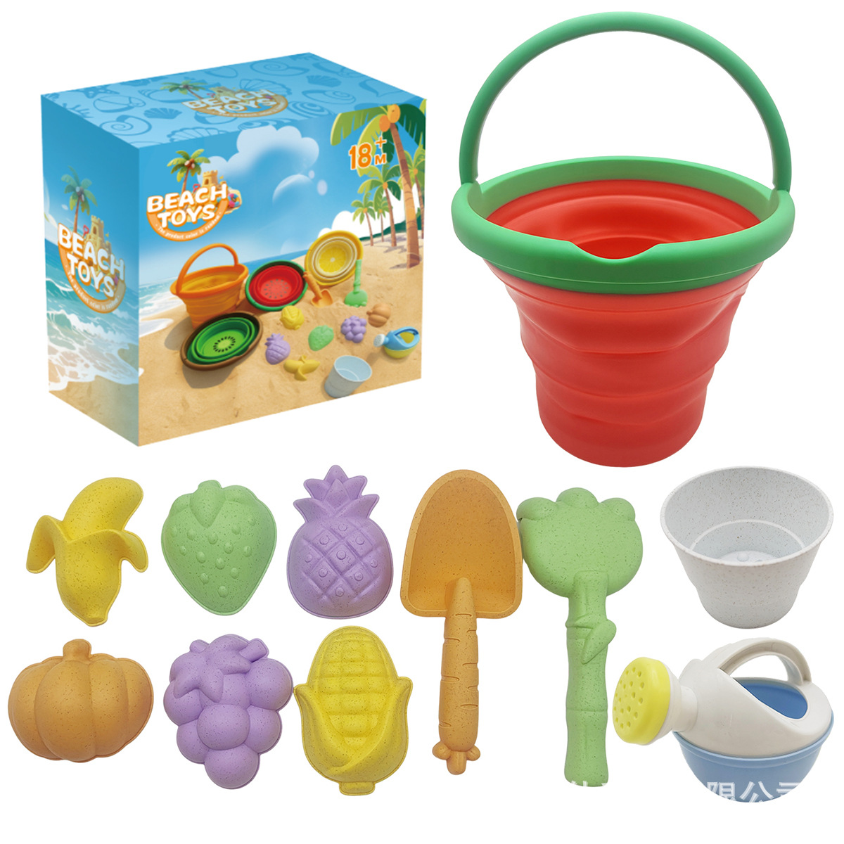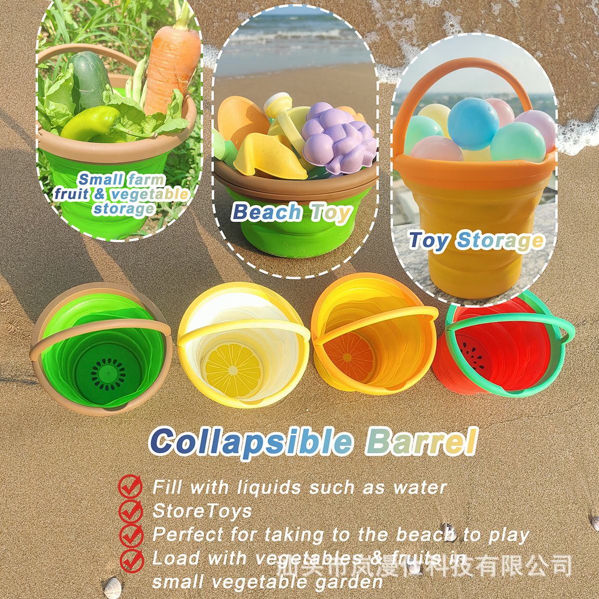 접이식 버킷 해변 장난감 세트 새로운 야채 및 과일 시리즈 물놀이 모래 삽 모래 놀이 도구 세트스토어 가기