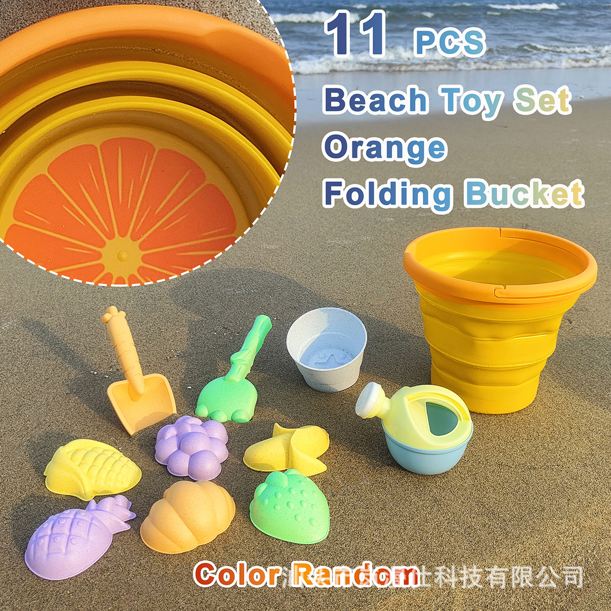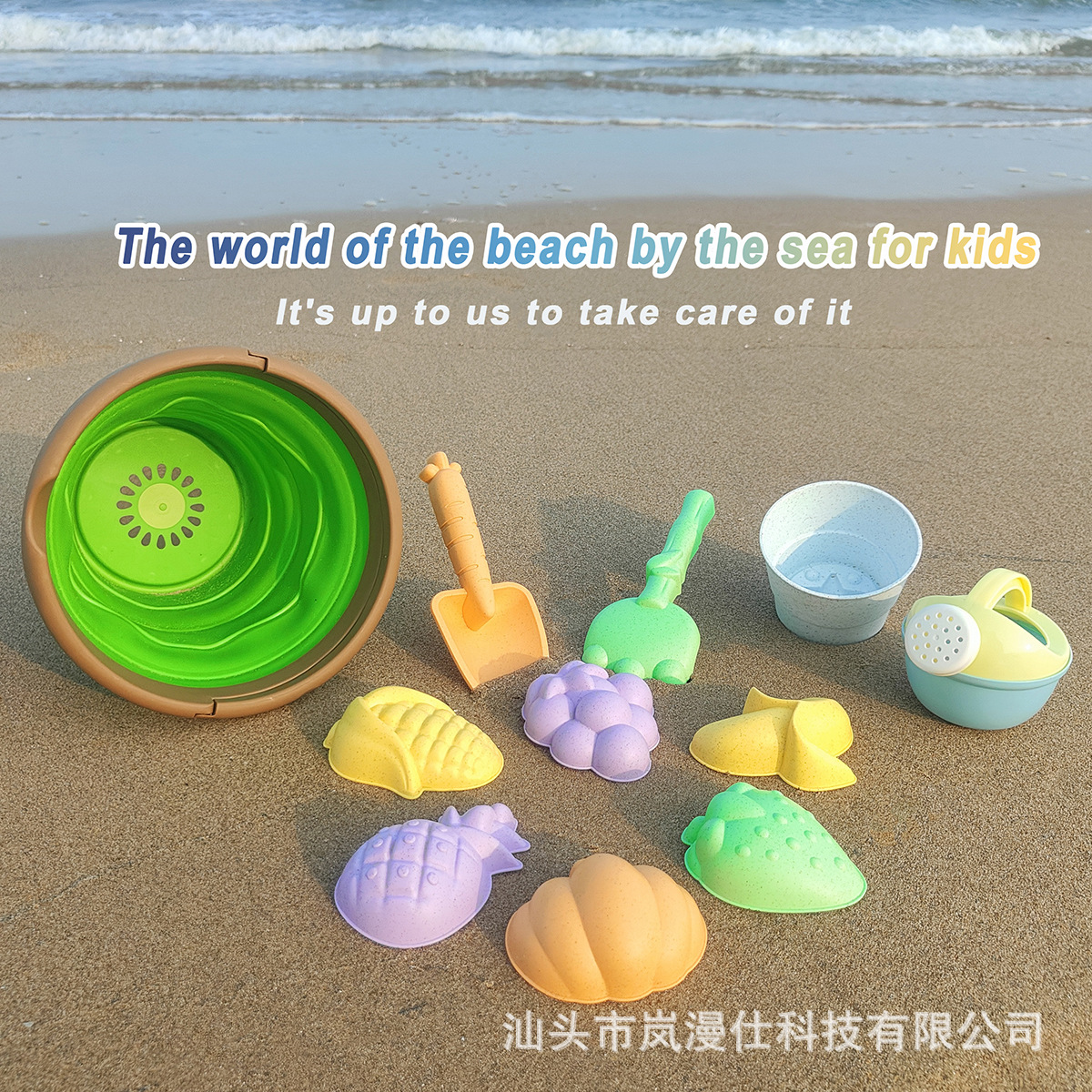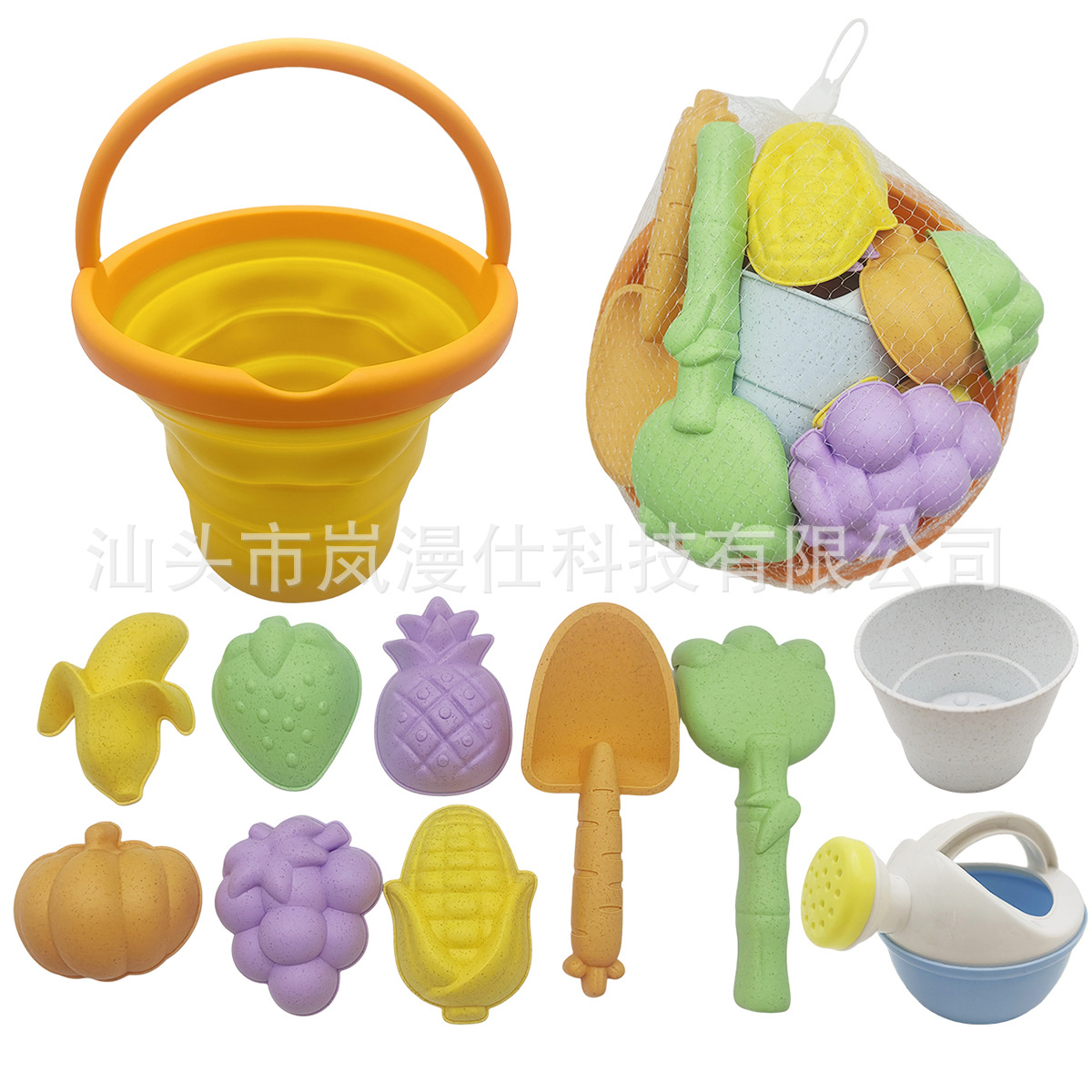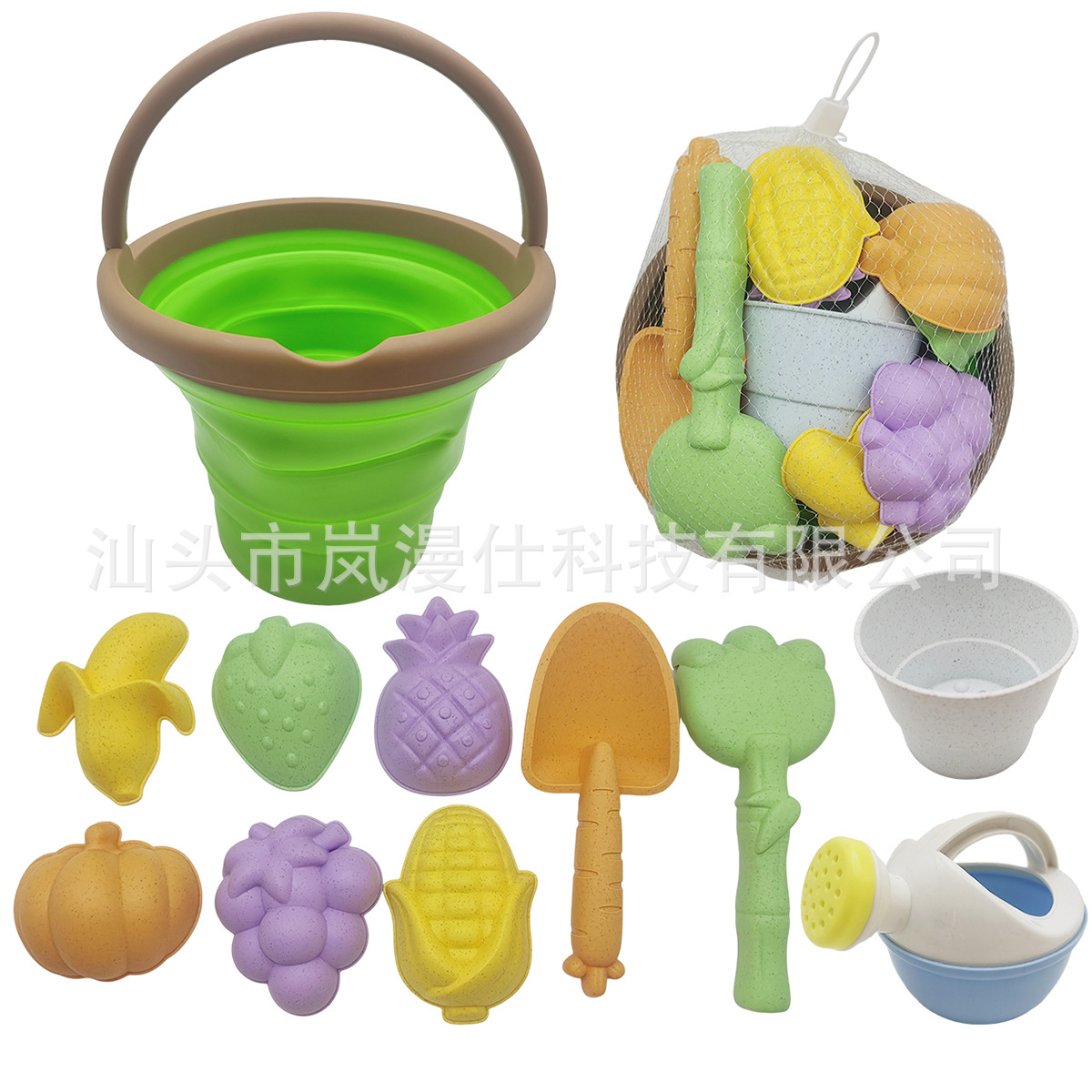 접이식 버킷 해변 장난감 세트 새로운 야채 및 과일 시리즈 물놀이 모래 삽 모래 놀이 도구 세트스토어 가기