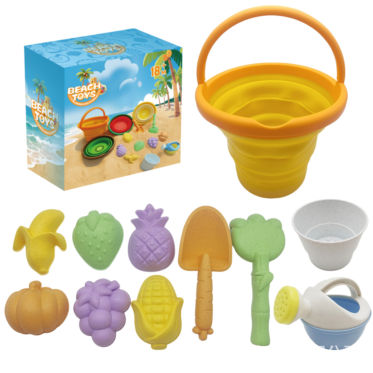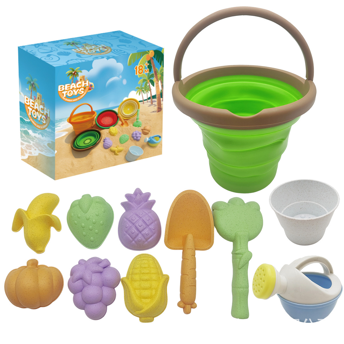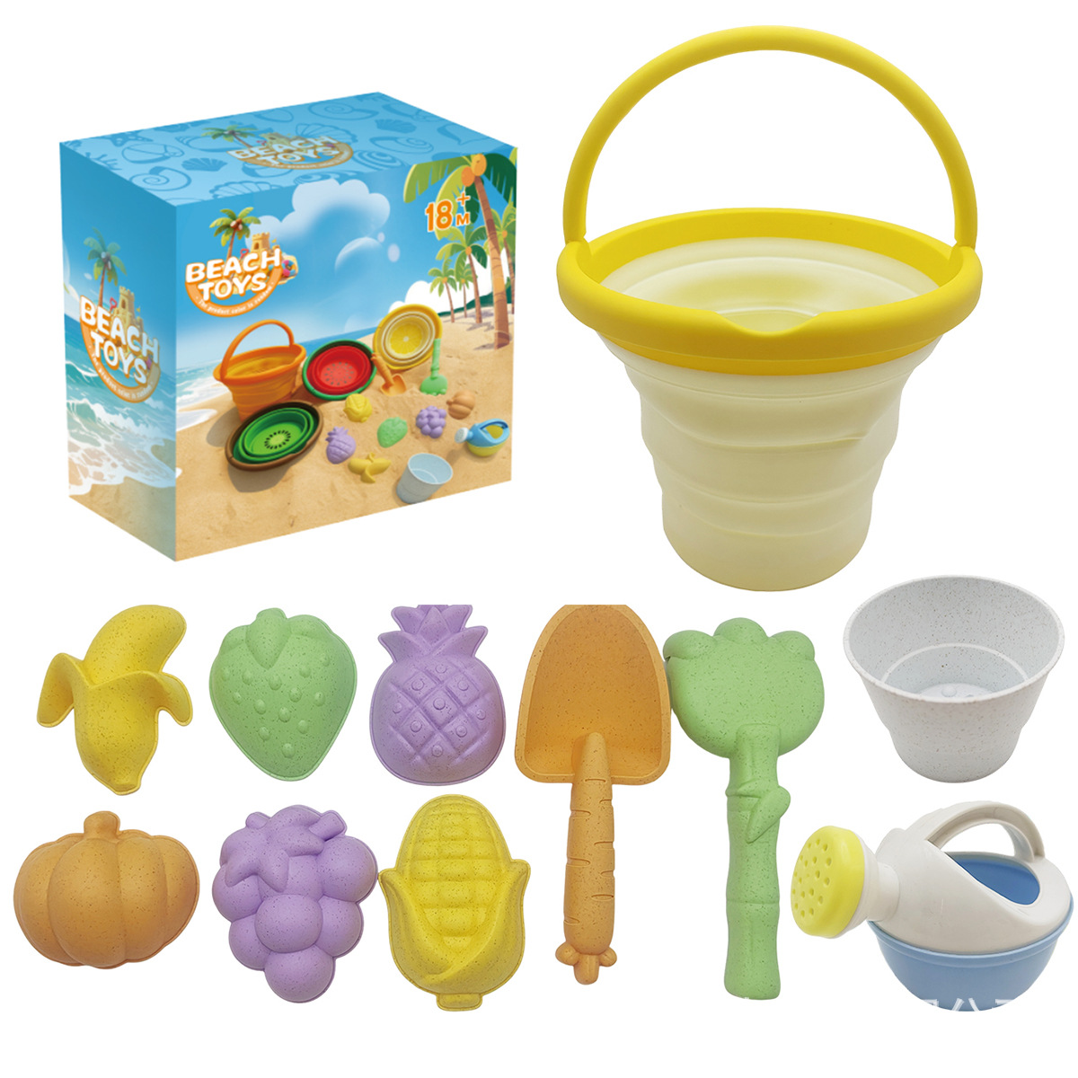 접이식 버킷 해변 장난감 세트 새로운 야채 및 과일 시리즈 물놀이 모래 삽 모래 놀이 도구 세트