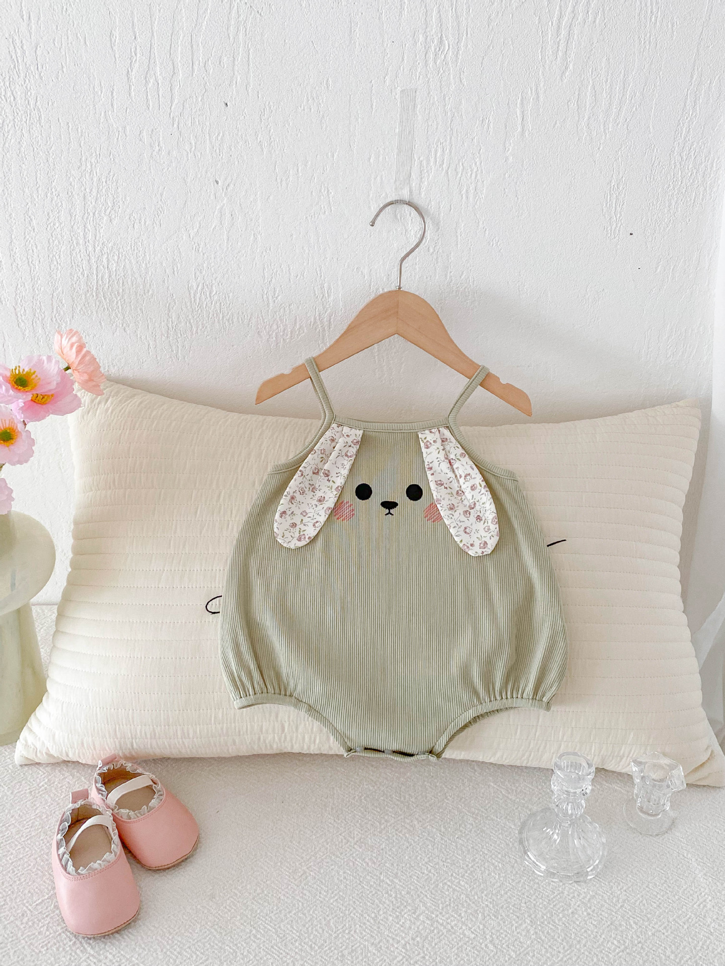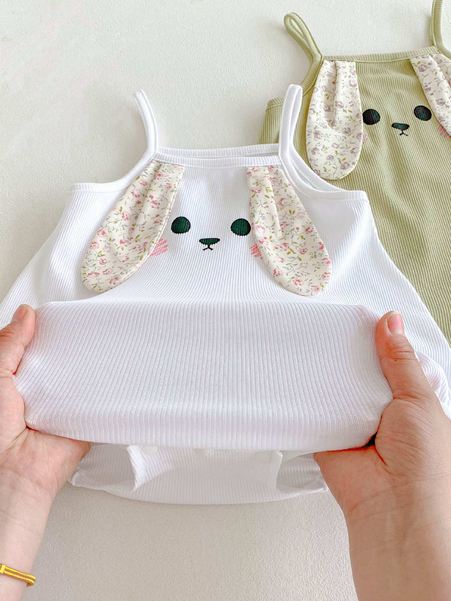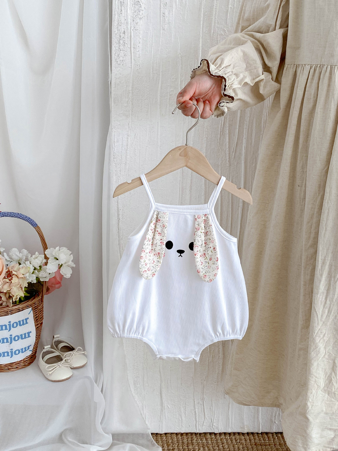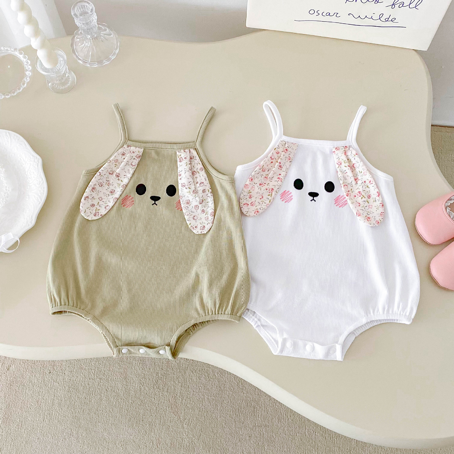 슈퍼 귀여운 신생아 아기 여름 얇은 가방 뚱뚱한 옷 작은 달 나이 아기 귀여운 만화 토끼 귀 점프 수트