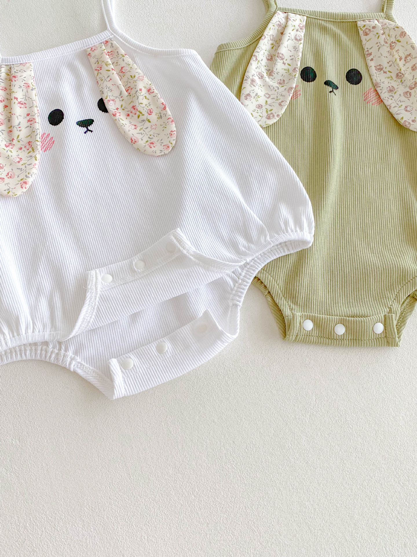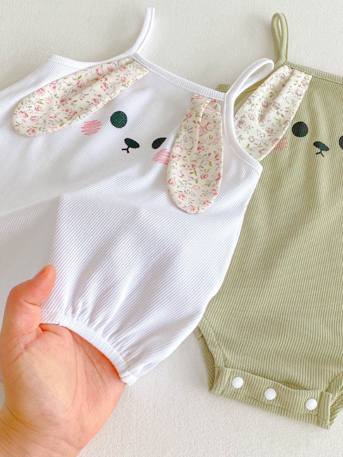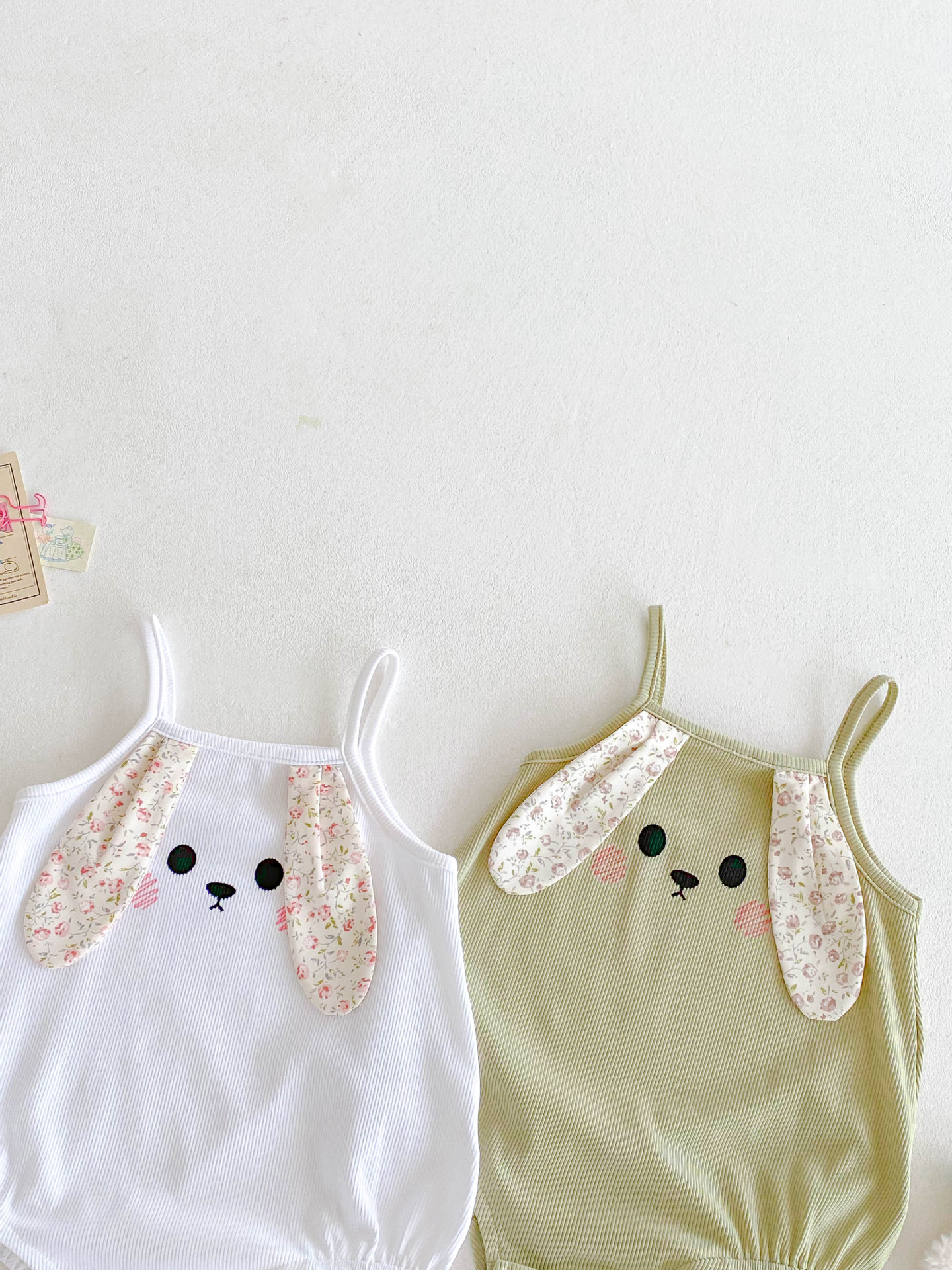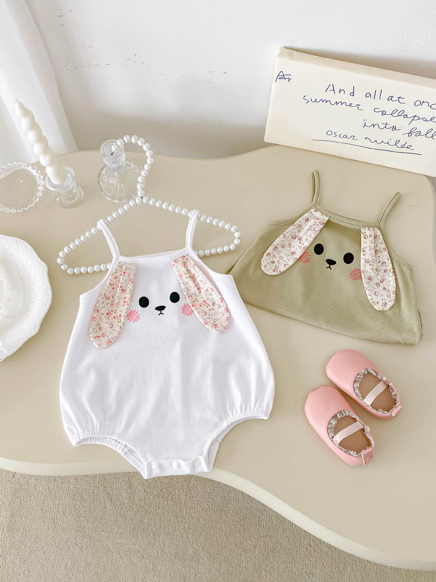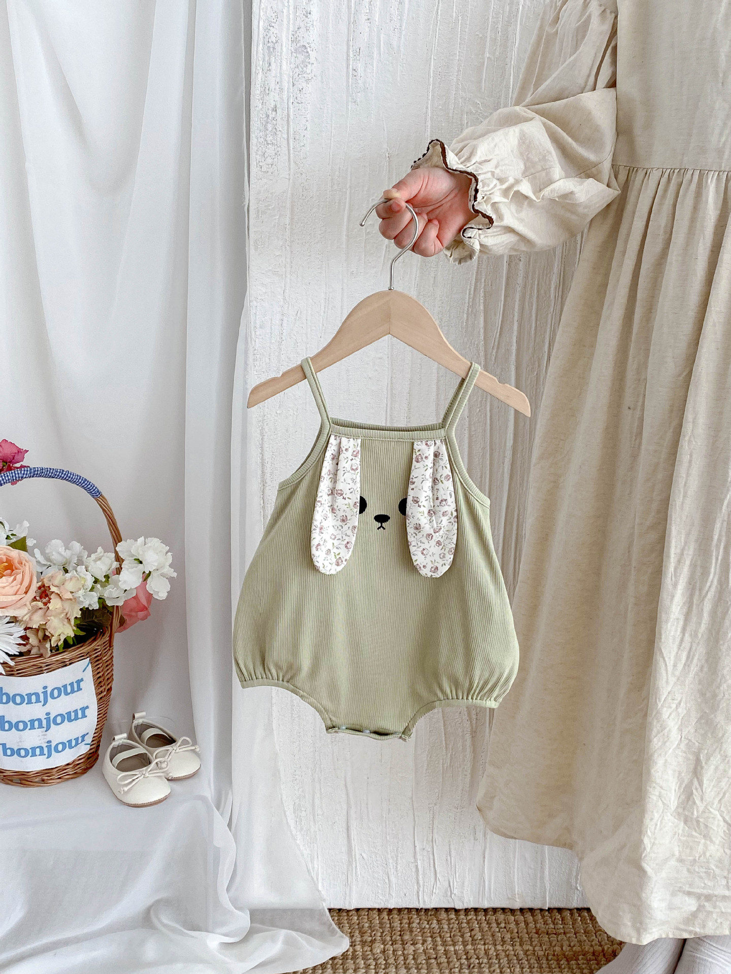 슈퍼 귀여운 신생아 아기 여름 얇은 가방 뚱뚱한 옷 작은 달 나이 아기 귀여운 만화 토끼 귀 점프 수트