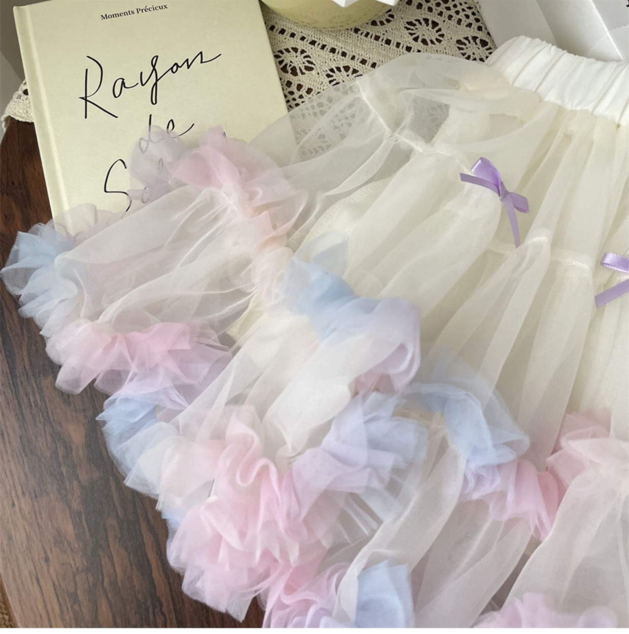 여름 소녀 활 그라데이션 메쉬 투투 스커트 어린이 스커트 공주 여성 스커트 아기 푹신한