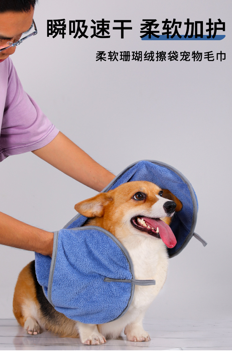 애완동물 수건, 강아지 손에 꽂을 수 있는 목욕 수건, 속건성 고양이 및 강아지 수건, 목욕 및 건조용 흡수성 산호 벨벳 목욕 수건