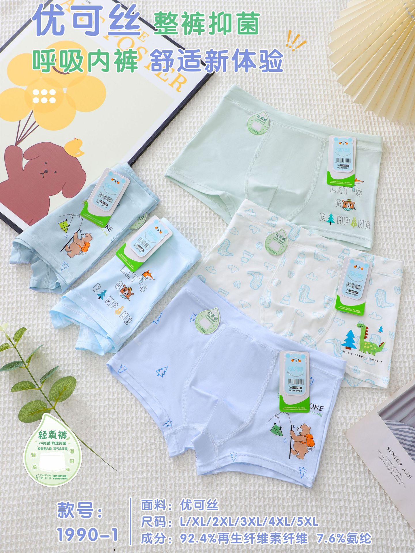 새로운 패브릭 에코 실크 아이니안 모달 남아용 복서 팬티 1990