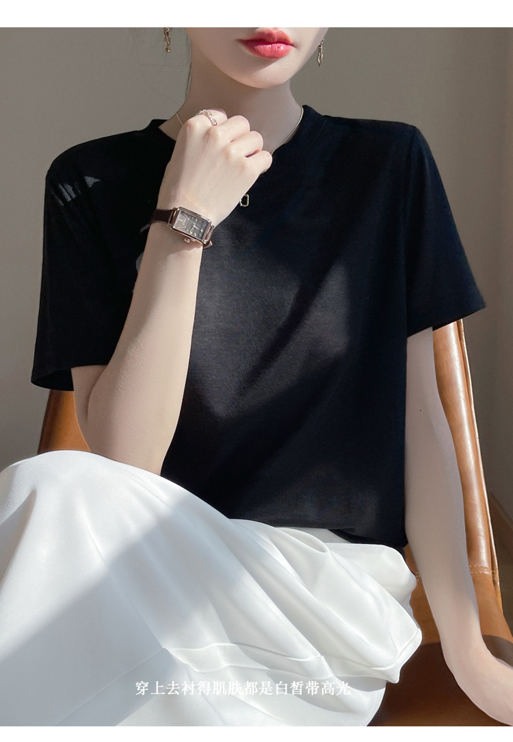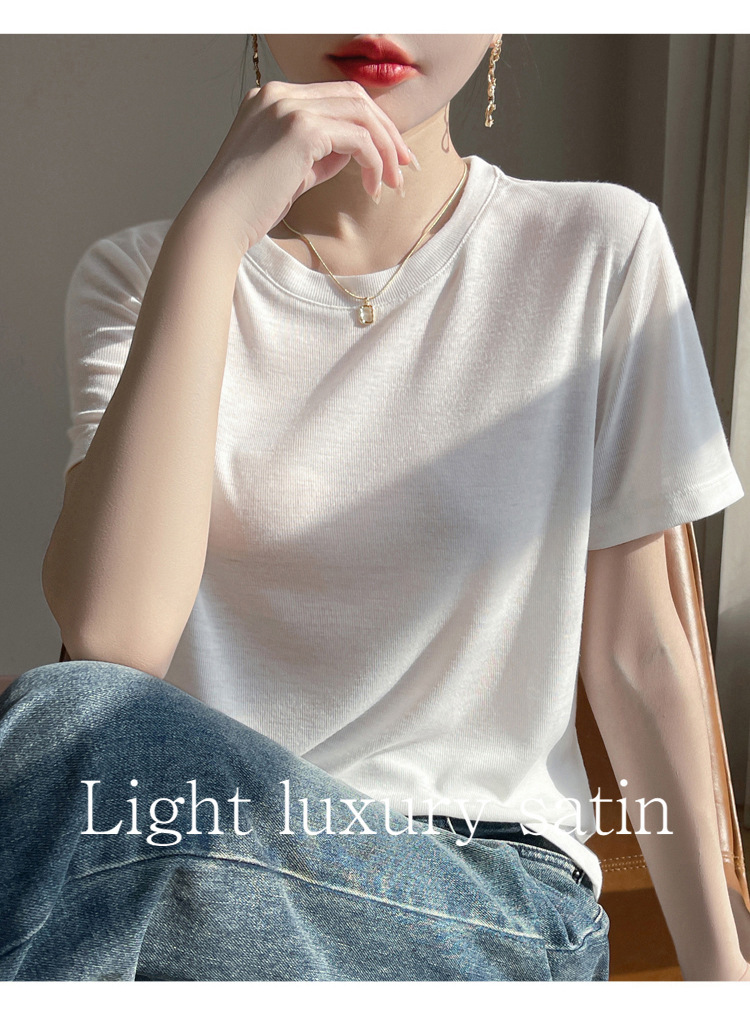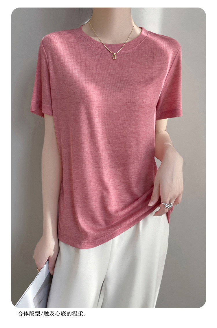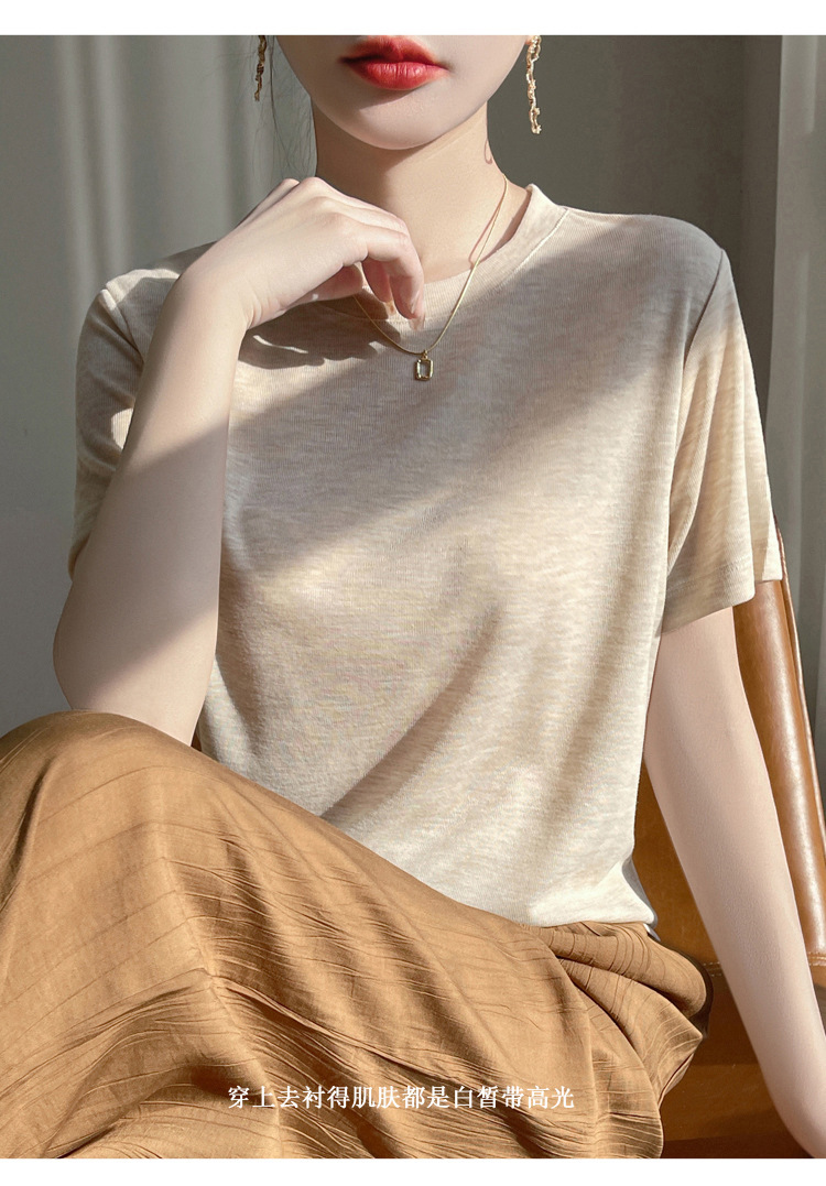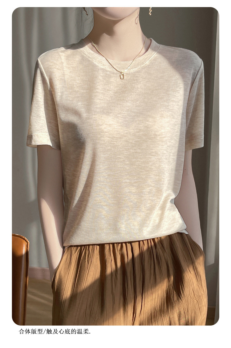 2025 새로운 여름 스타일 느슨한 라운드 넥 리오셀 티셔츠 여성용 바닥 셔츠 반팔 여성용 탑 여름 얇은스토어 가기
