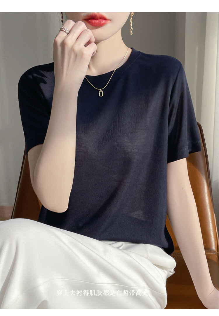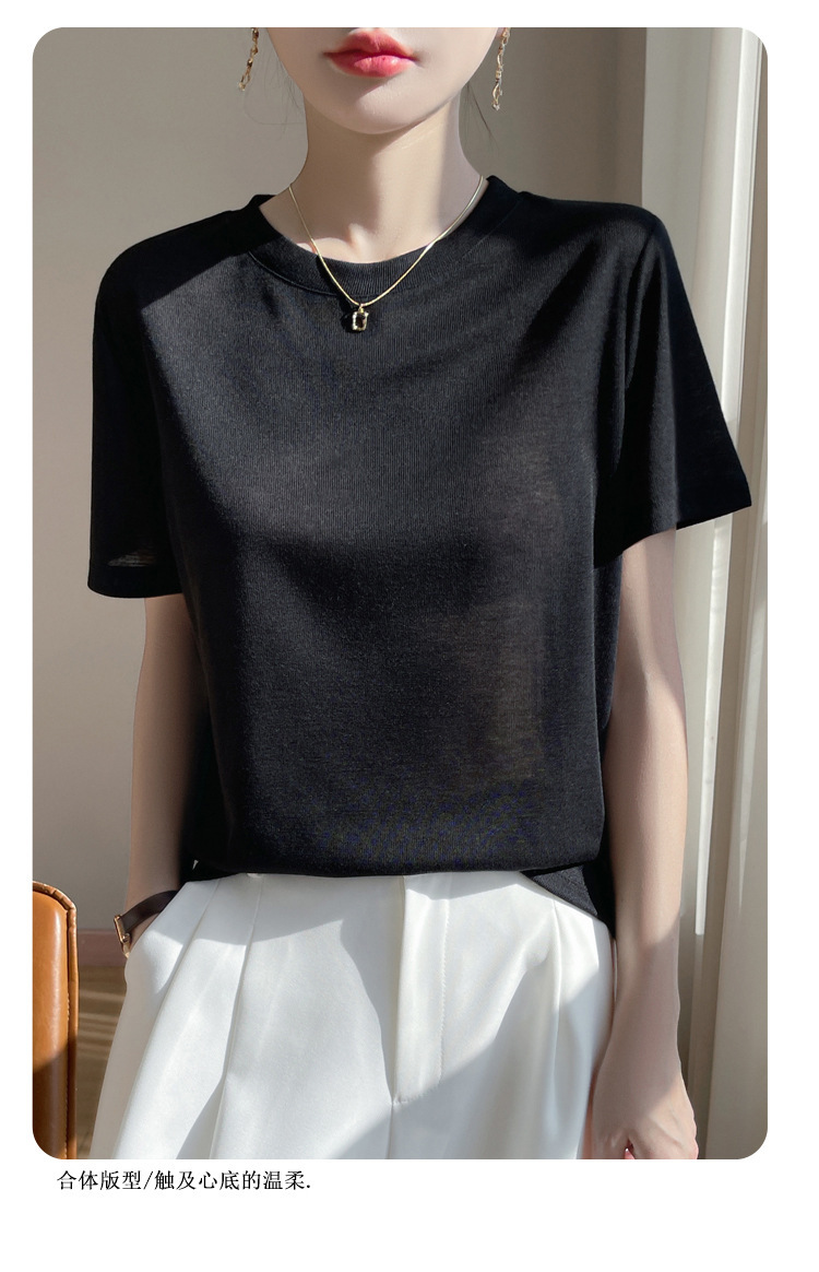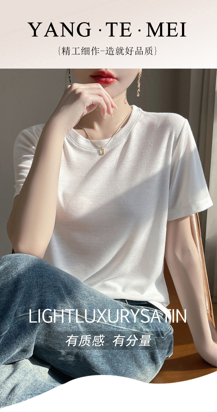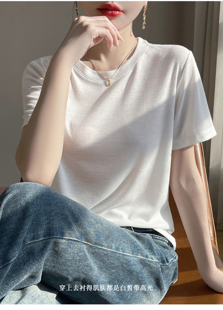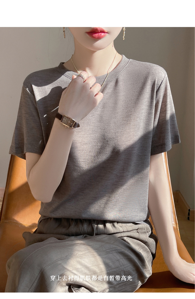 2025 새로운 여름 스타일 느슨한 라운드 넥 리오셀 티셔츠 여성용 바닥 셔츠 반팔 여성용 탑 여름 얇은스토어 가기