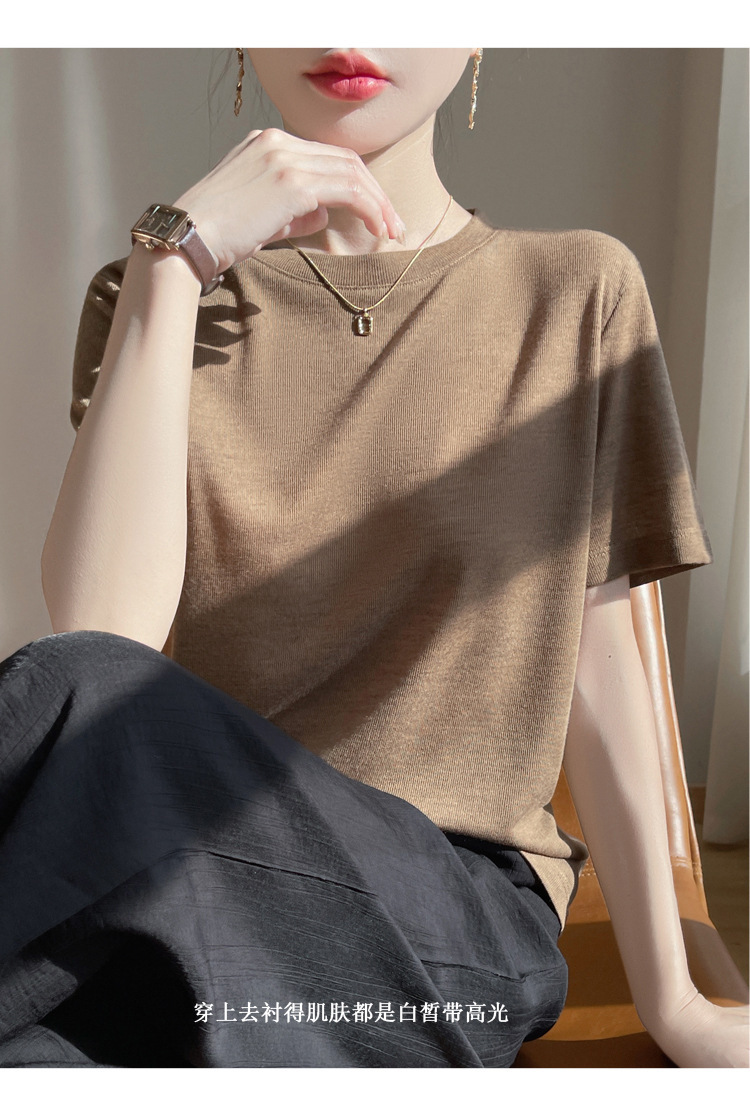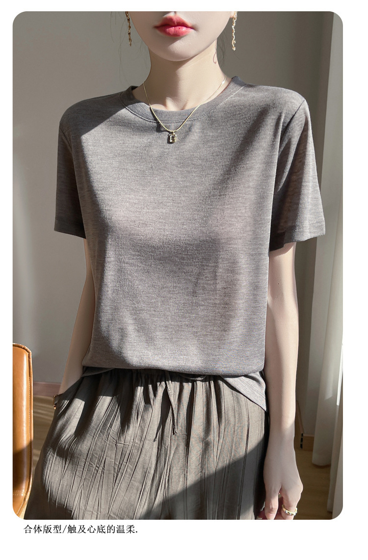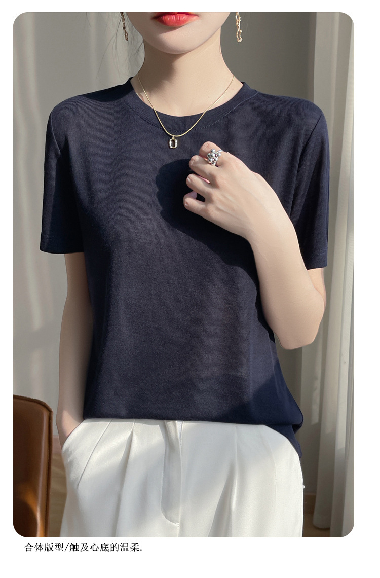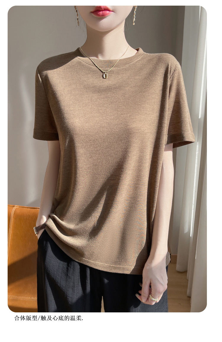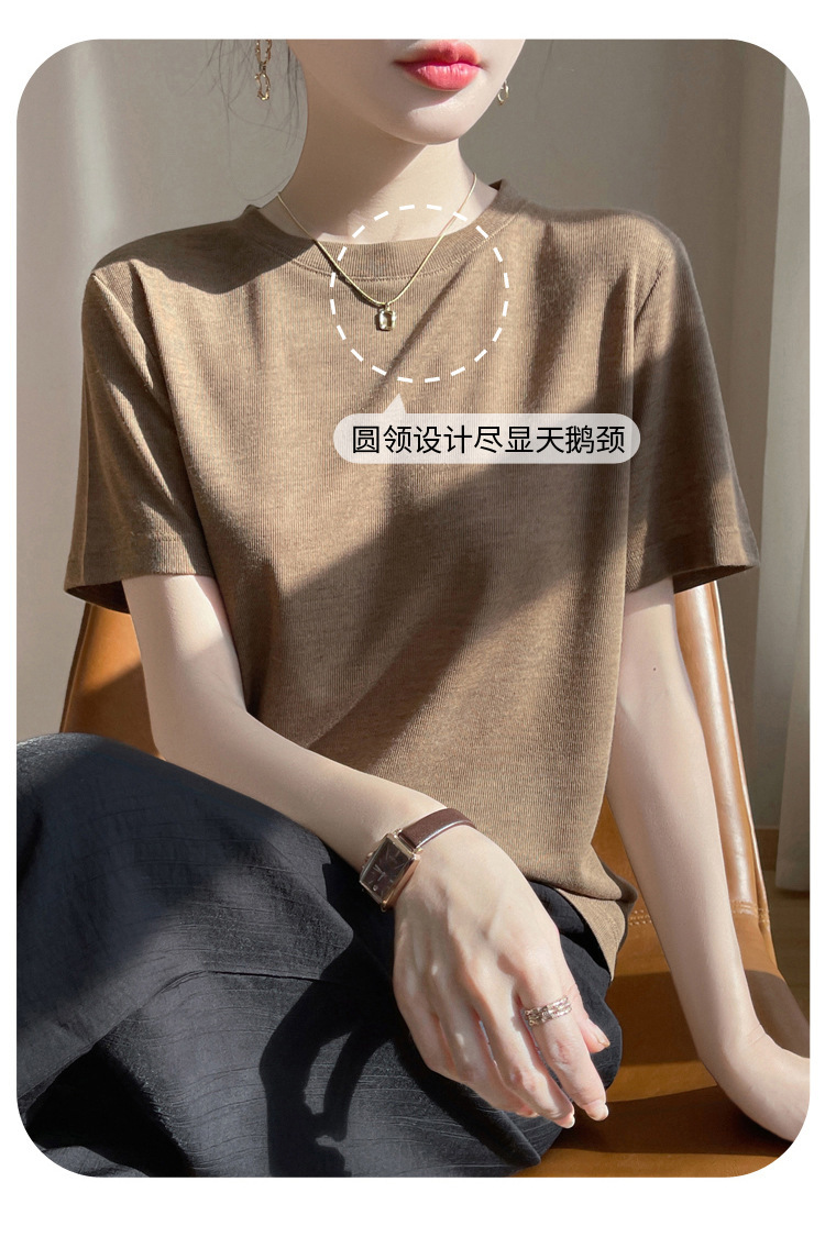 2025 새로운 여름 스타일 느슨한 라운드 넥 리오셀 티셔츠 여성용 바닥 셔츠 반팔 여성용 탑 여름 얇은스토어 가기