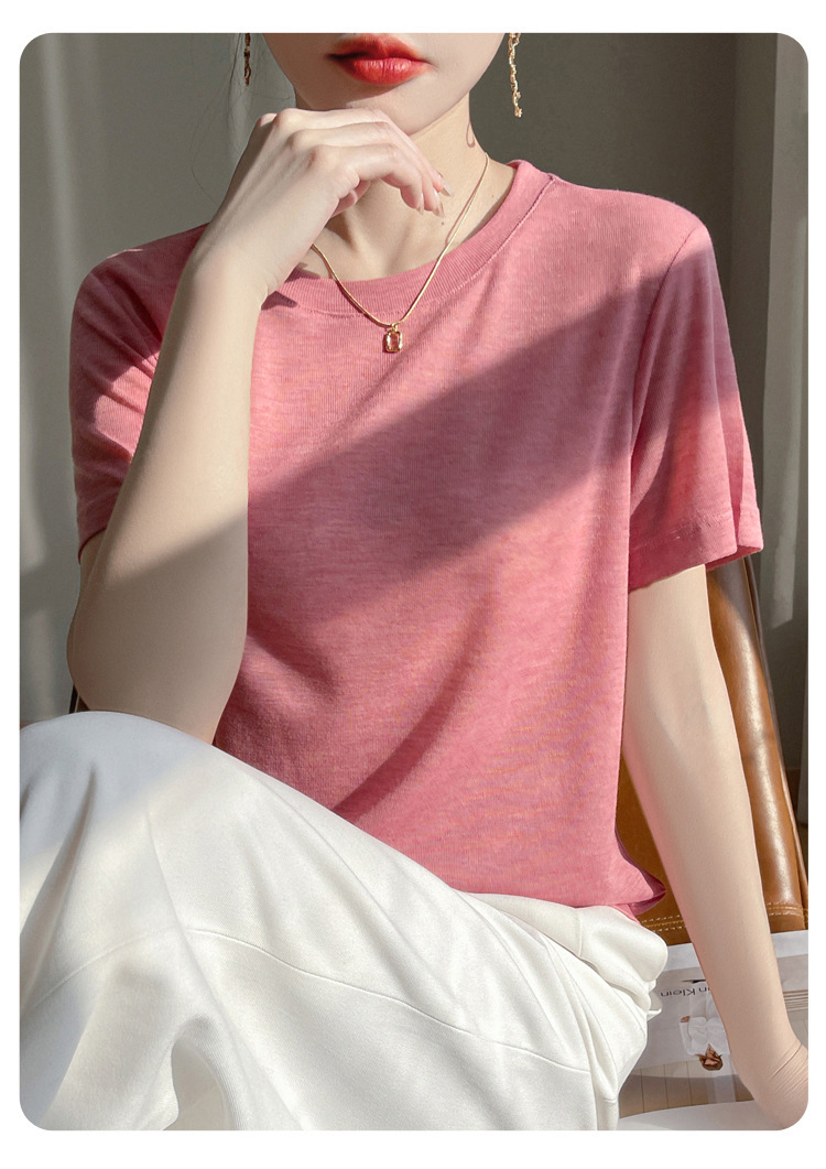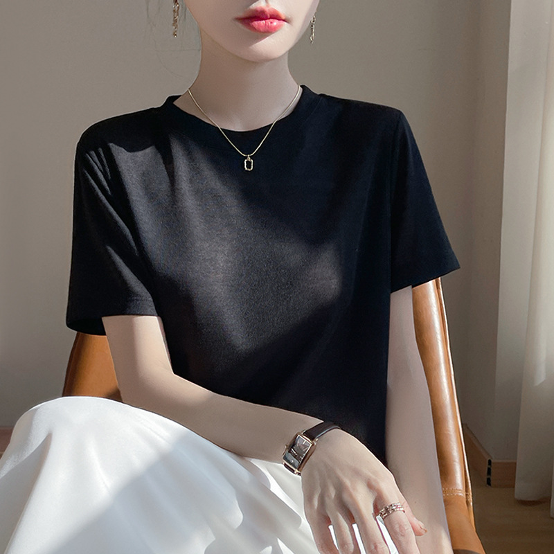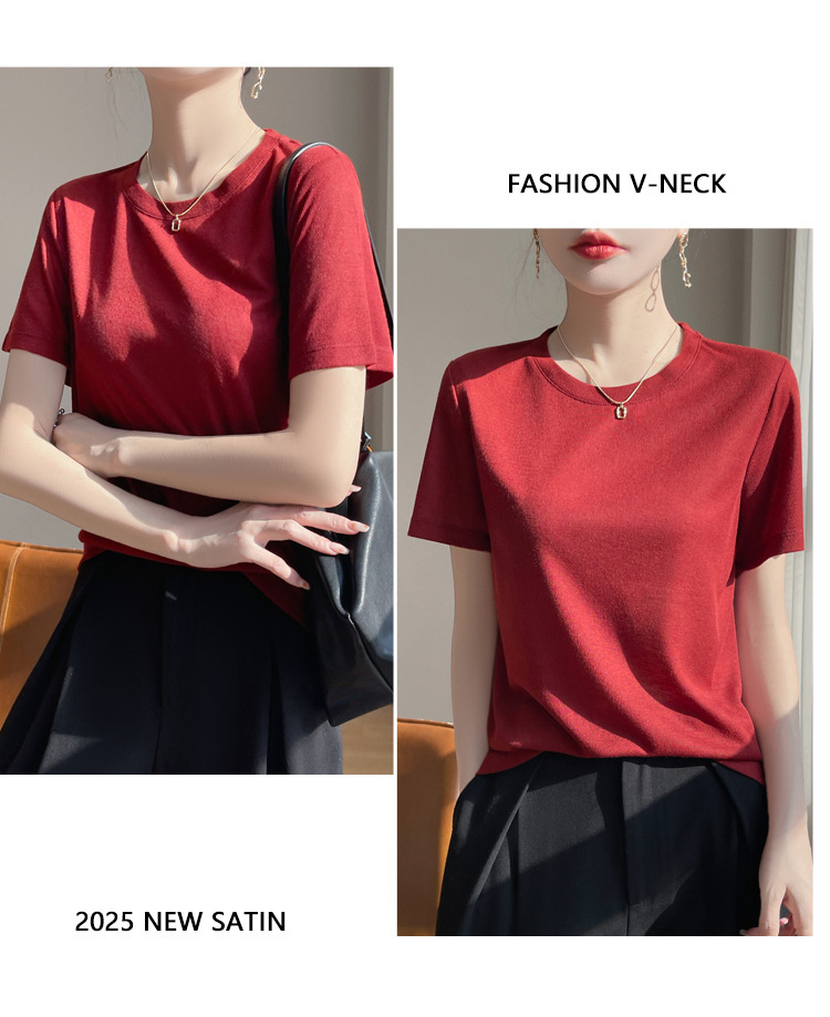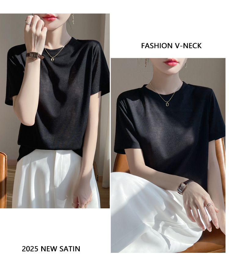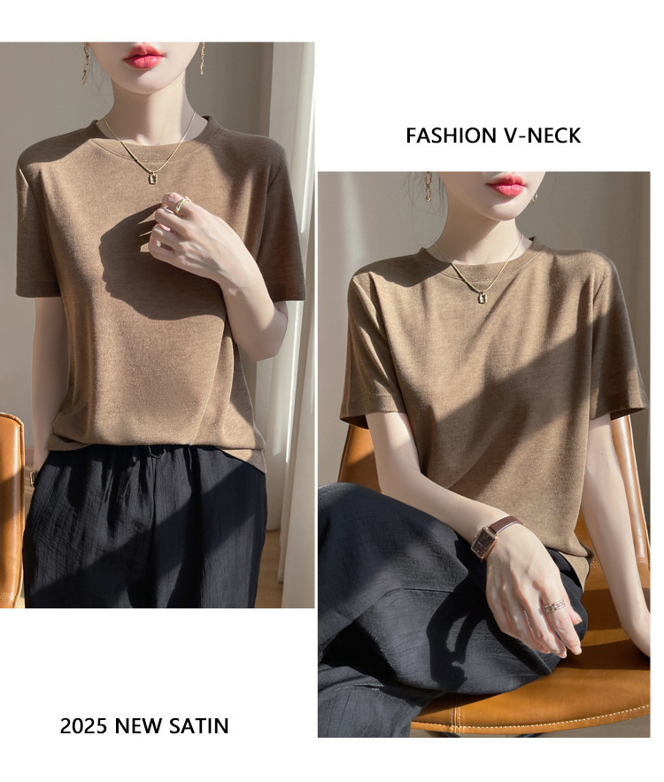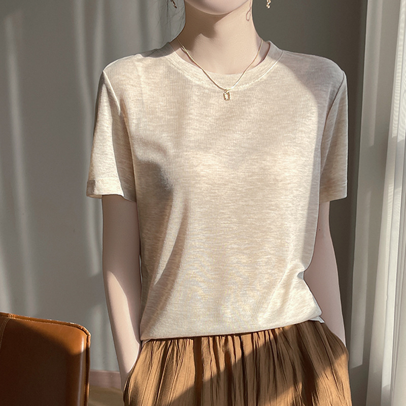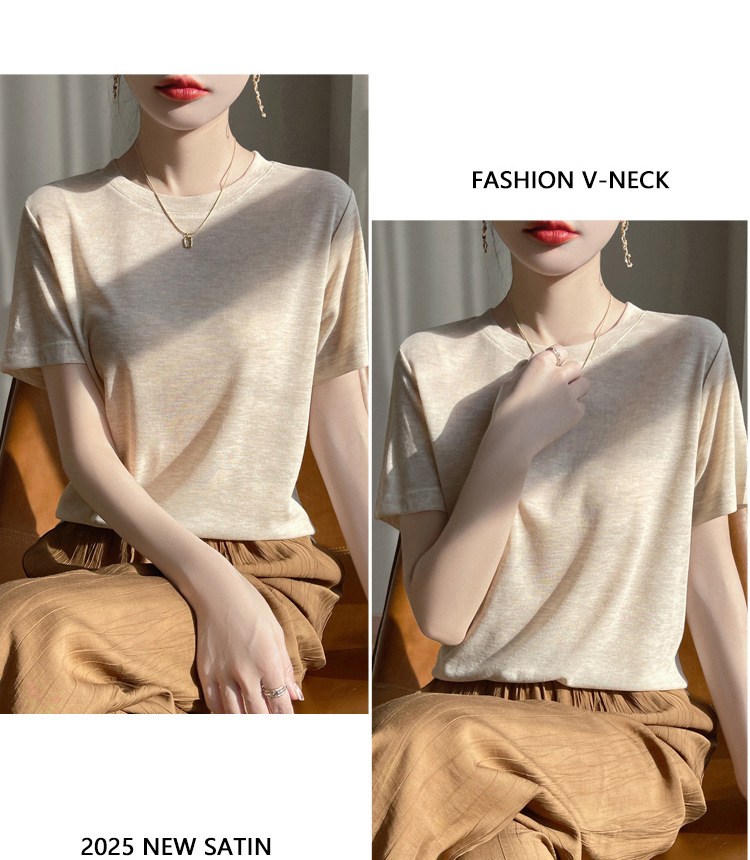 2025 새로운 여름 스타일 느슨한 라운드 넥 리오셀 티셔츠 여성용 바닥 셔츠 반팔 여성용 탑 여름 얇은