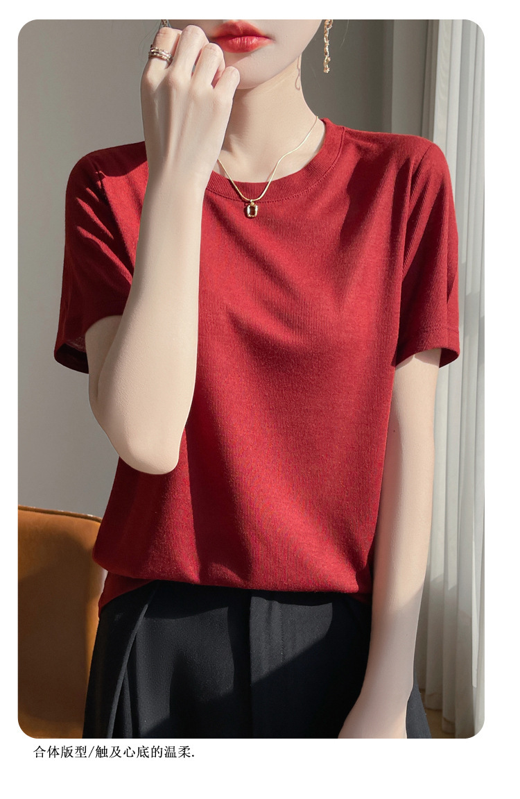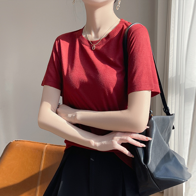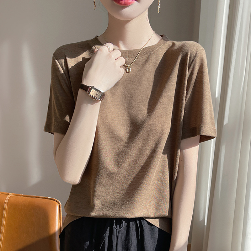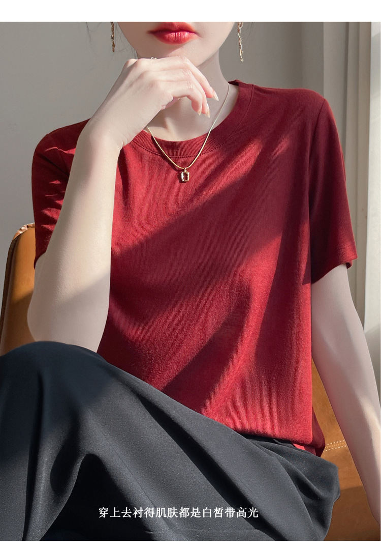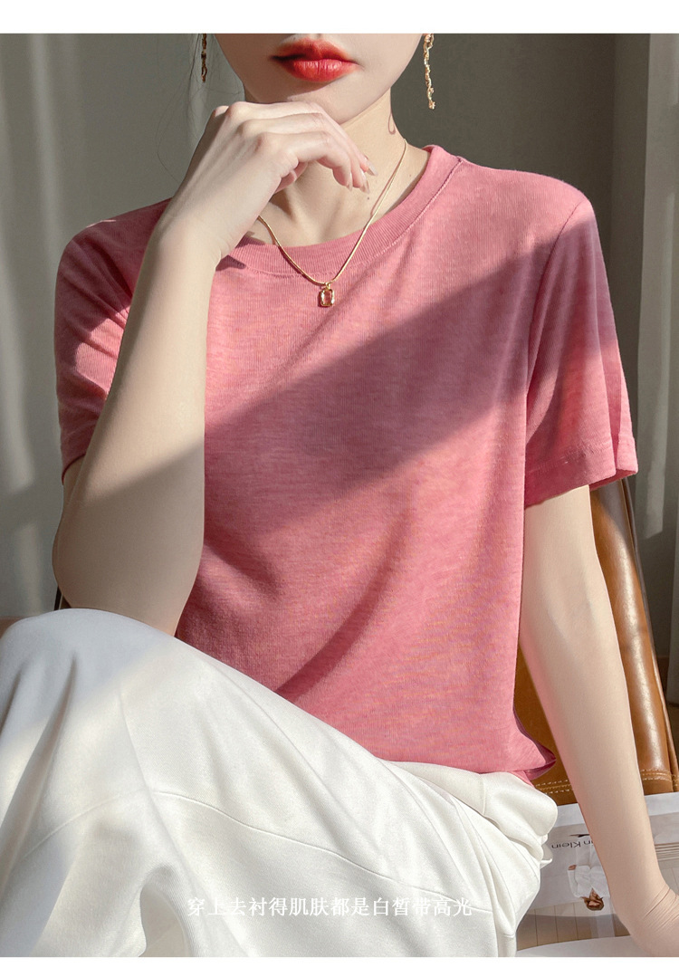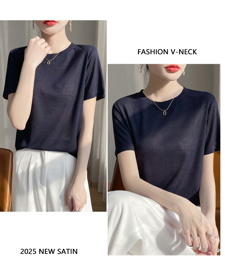 2025 새로운 여름 스타일 느슨한 라운드 넥 리오셀 티셔츠 여성용 바닥 셔츠 반팔 여성용 탑 여름 얇은