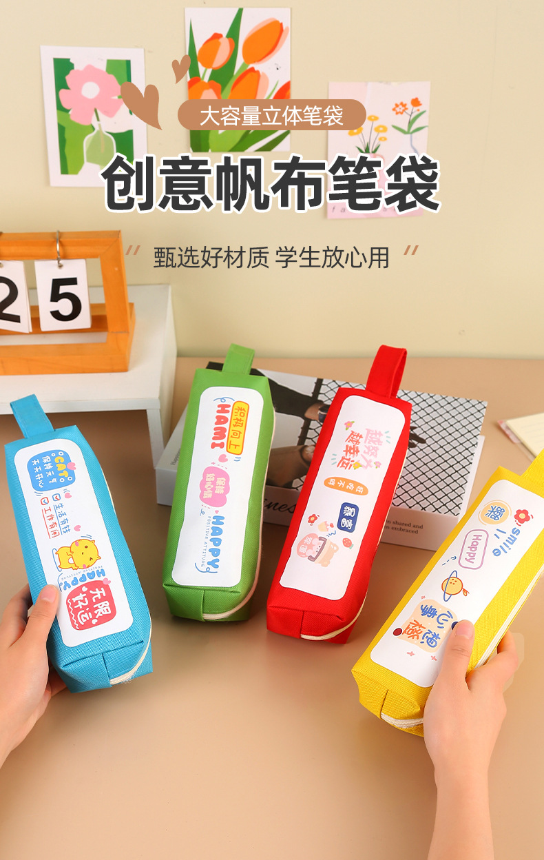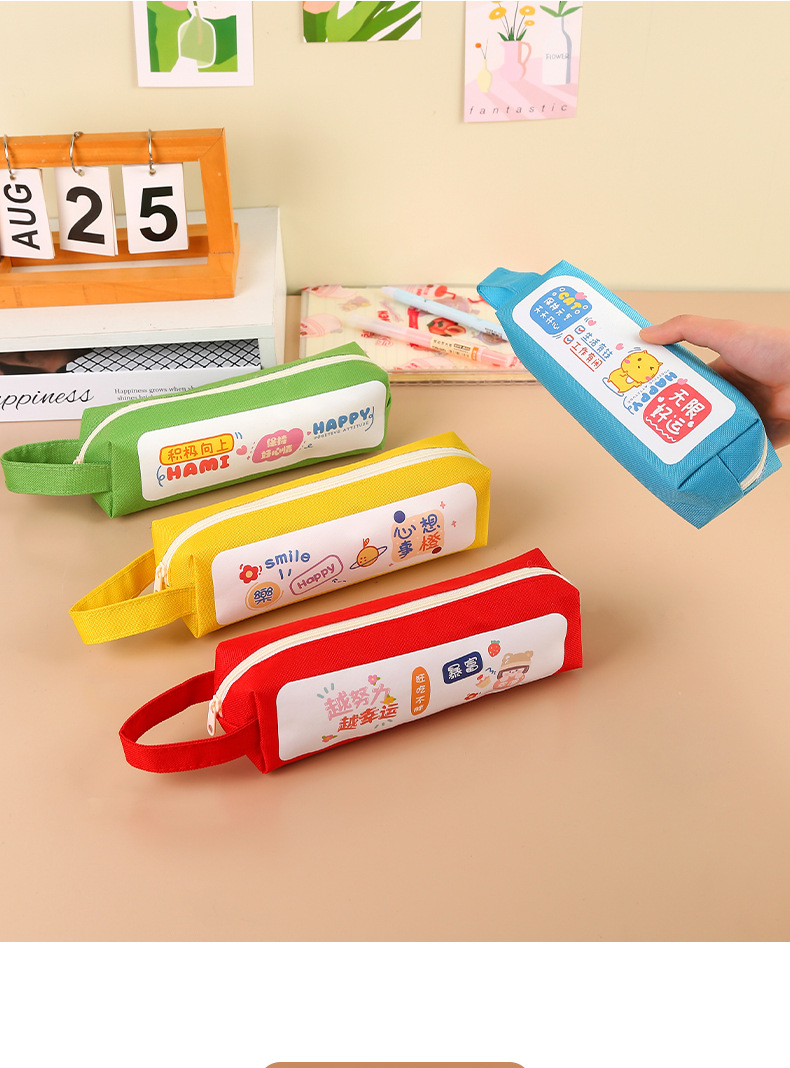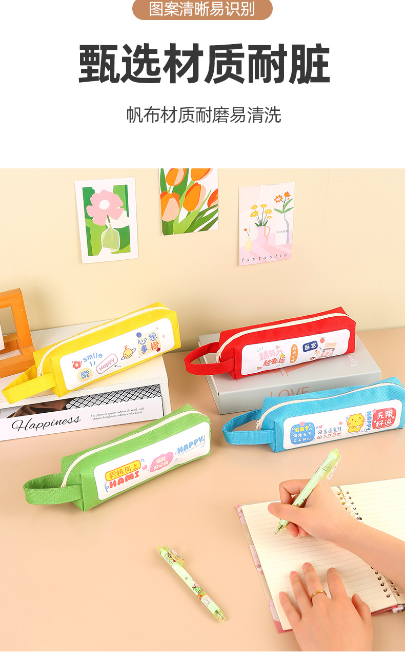 감동적인 텍스트 캔버스 휴대용 연필 케이스 학생 높은 가치 문구 가방 대용량 지퍼 연필 가방 문구 선물스토어 가기