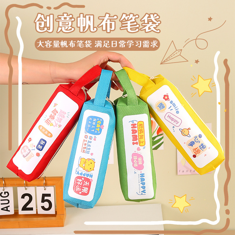 감동적인 텍스트 캔버스 휴대용 연필 케이스 학생 높은 가치 문구 가방 대용량 지퍼 연필 가방 문구 선물