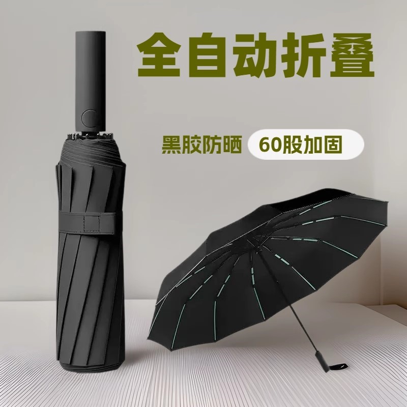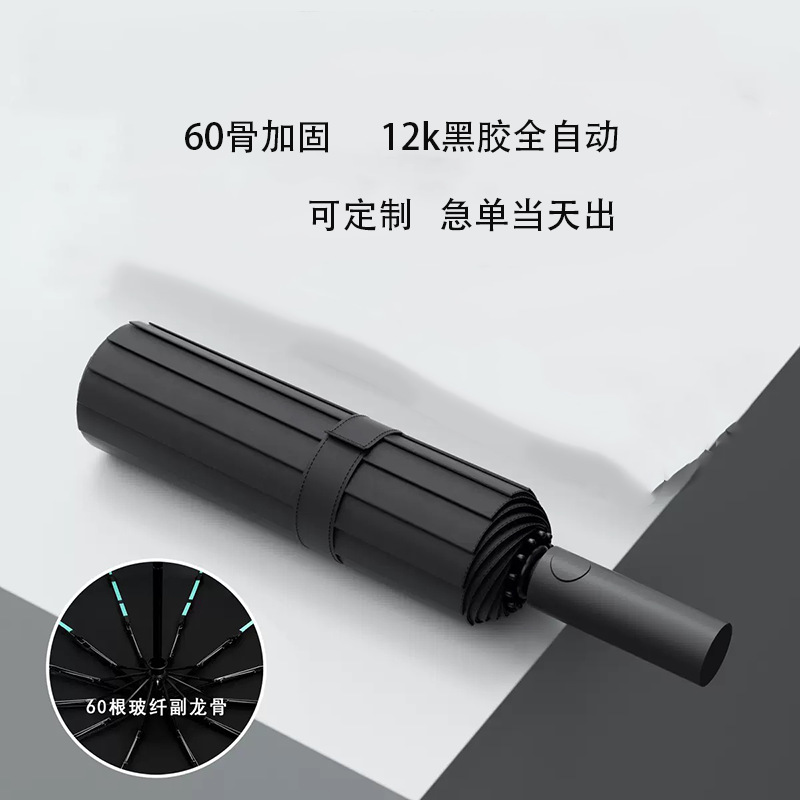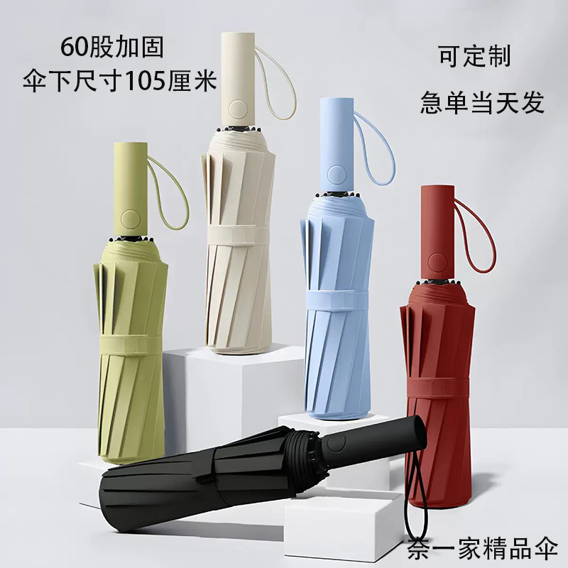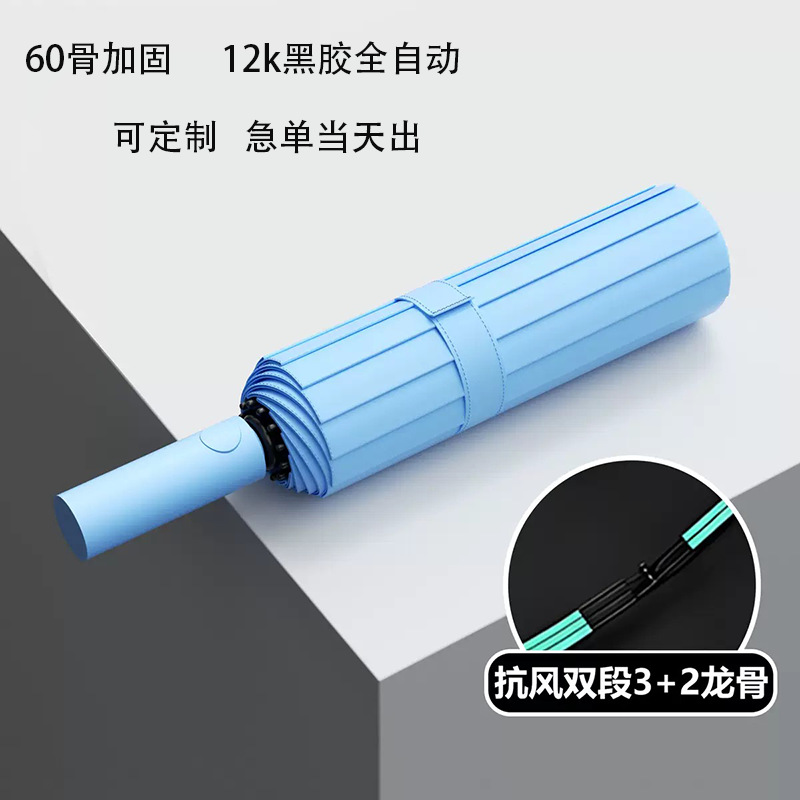 완전 자동 60 뼈 비닐 우산 강화 남성용 접는 우산 비 또는 빛 대형 방풍 차양 및 자외선 차단스토어 가기