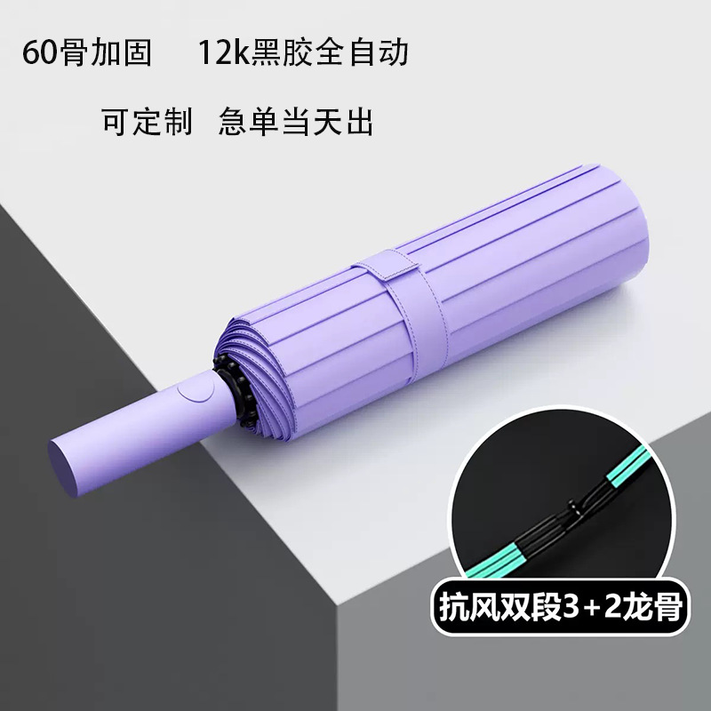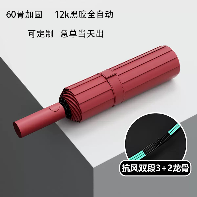 완전 자동 60 뼈 비닐 우산 강화 남성용 접는 우산 비 또는 빛 대형 방풍 차양 및 자외선 차단
