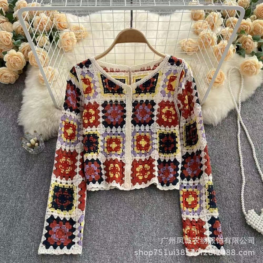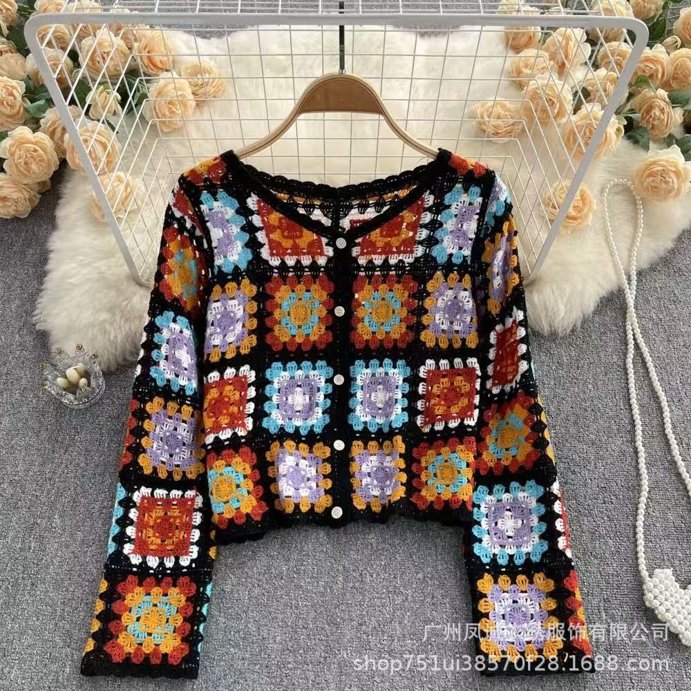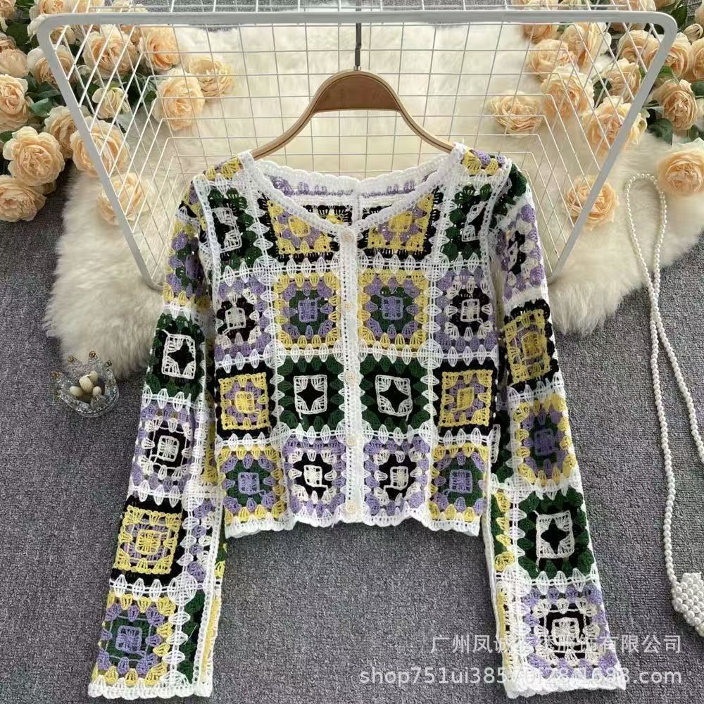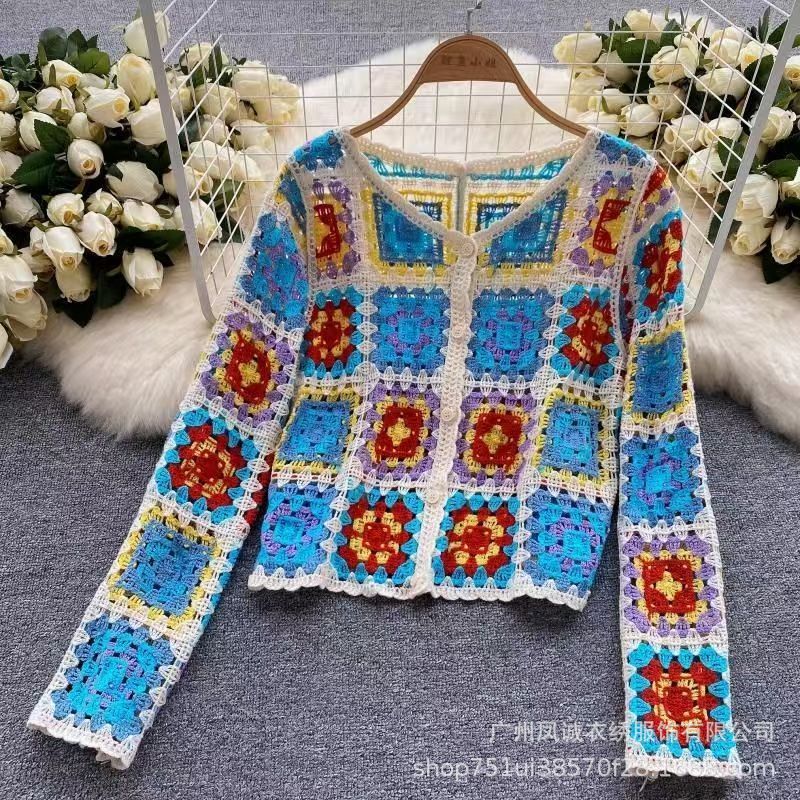 레트로 시크 크로 셰 뜨개질 중공 v 넥 니트 자외선 차단 카디건 코트 여성 얇은 여름 게으른 느슨한 긴팔 탑