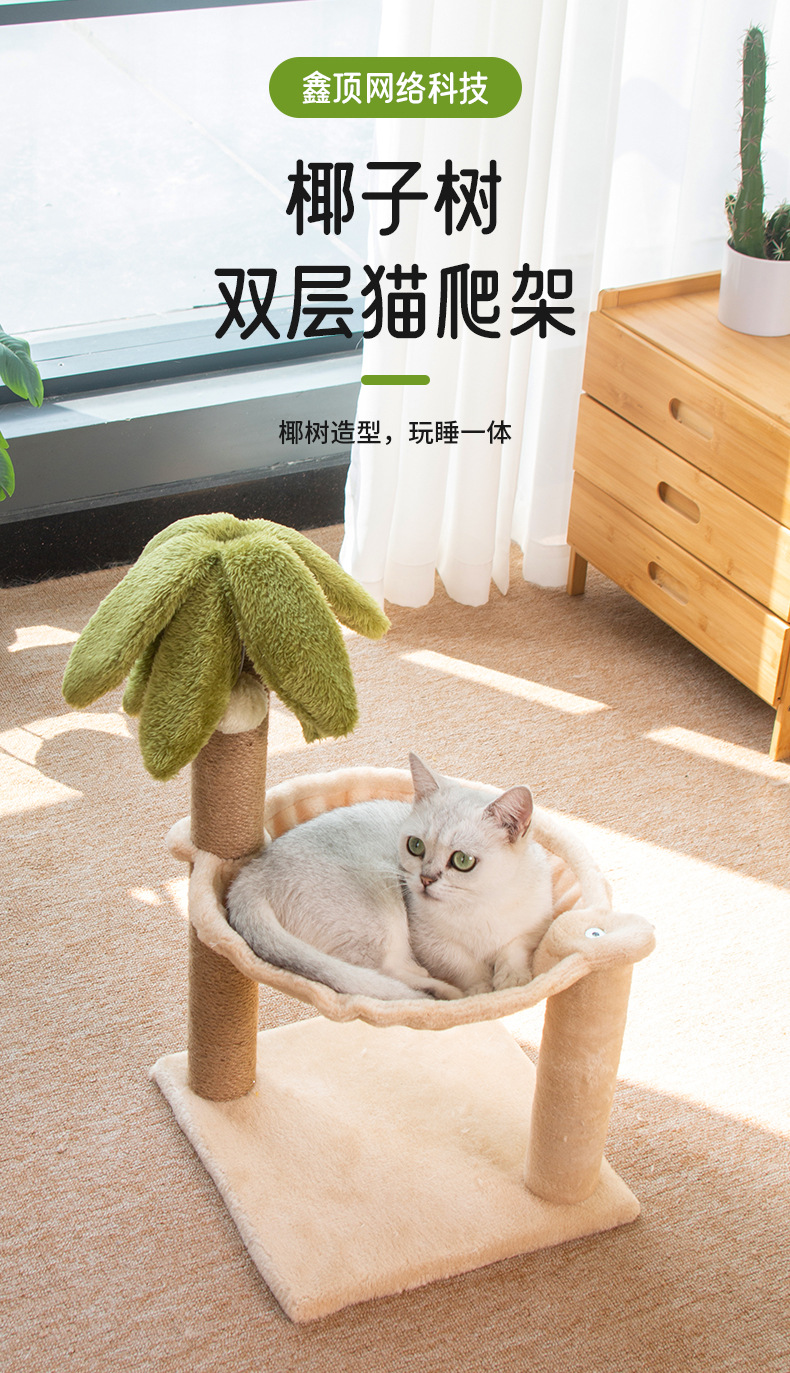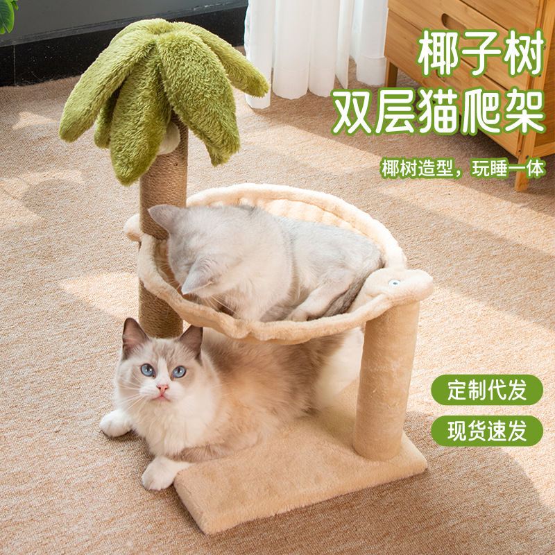코코넛 나무 더블 레이어 고양이 클라이밍 프레임 애완 동물 장난감 고양이 둥지 고양이 나무 고양이 스크래치 타워 사이잘 고양이 랙 고양이 점프 플랫폼 고양이 용품스토어 가기