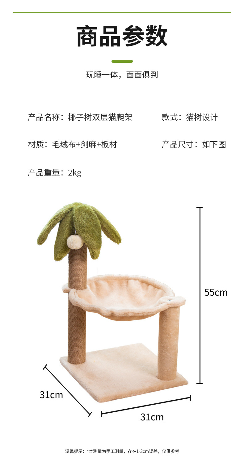 코코넛 나무 더블 레이어 고양이 클라이밍 프레임 애완 동물 장난감 고양이 둥지 고양이 나무 고양이 스크래치 타워 사이잘 고양이 랙 고양이 점프 플랫폼 고양이 용품