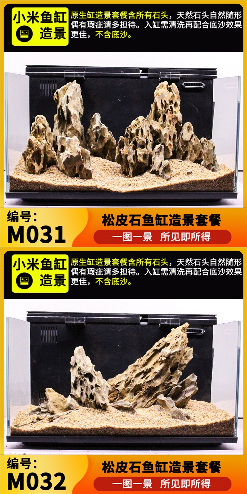 • Xiaomi 실린더에 적합 [화산 풍경] 패키지 2: 작은 화산 + 불규칙 화산 각 1개 + 흑금 모래 4.5kg개 + 3-5cm 흑색 화산석 2파운드