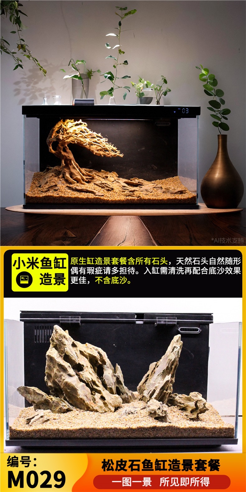 Xiaomi 수조 조경에 적합 Mijia 스마트 에코 스트림 그린 드래곤 소나무 껍질 스톤 및 우드 패키지 전체 세트스토어 가기