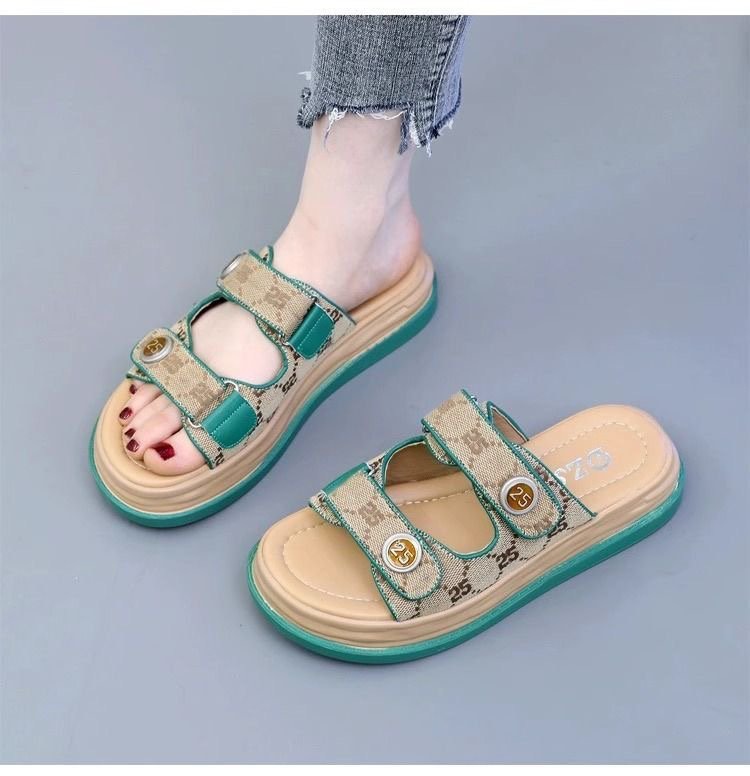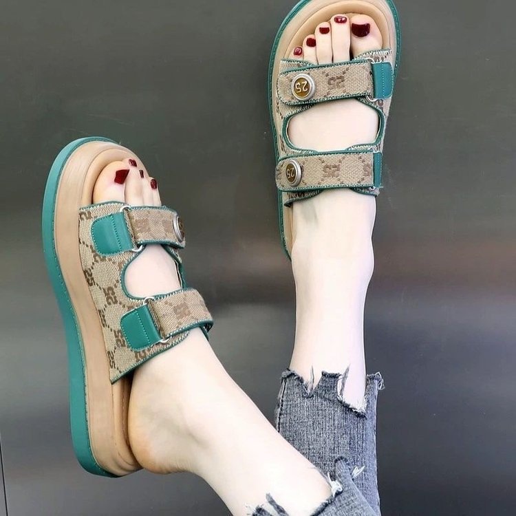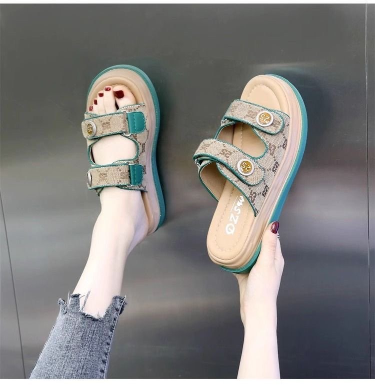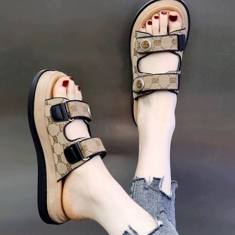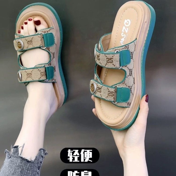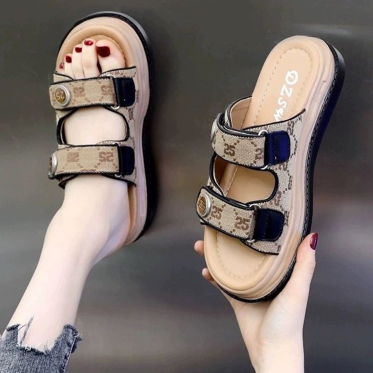 여성 여름 아우터웨어를위한 Xiaoxiangfeng 샌들 2025 새로운 캐주얼 중국 스타일 두꺼운 밑창 캐주얼 패션 해변 샌들스토어 가기