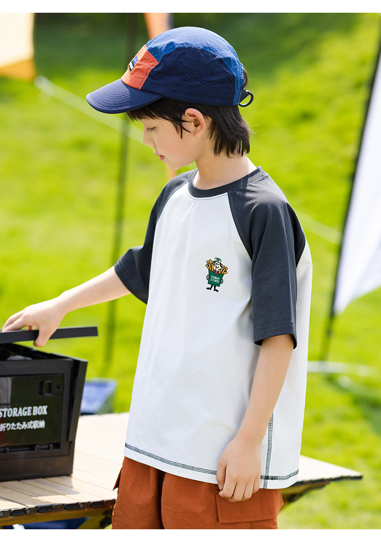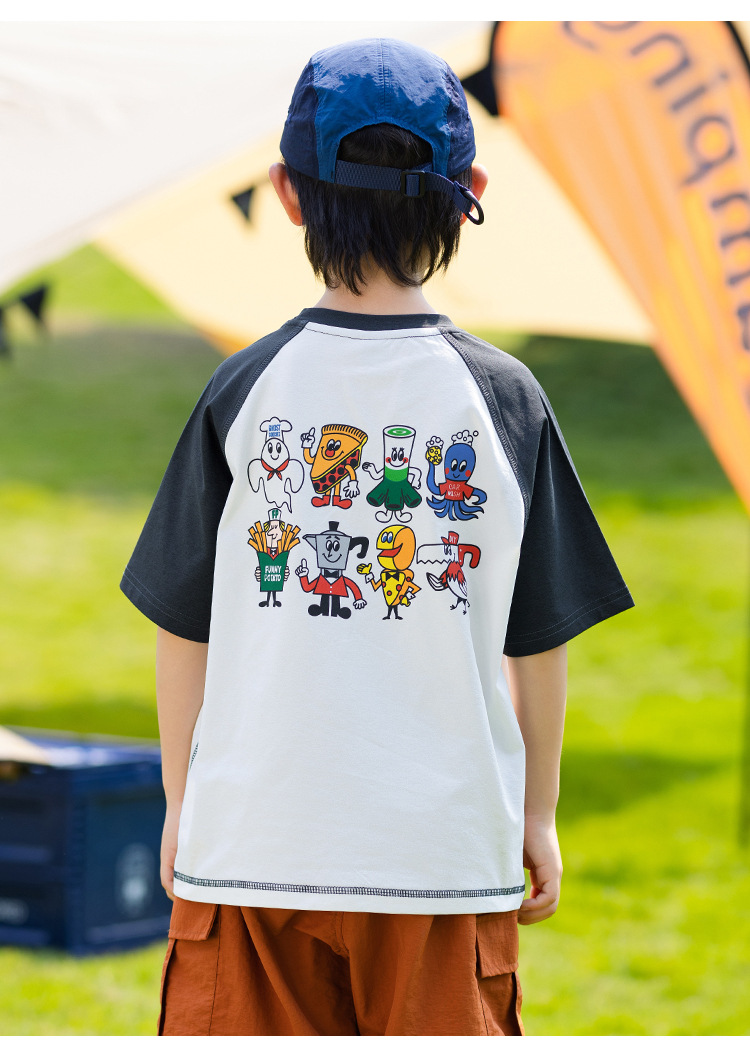 EK 아동복 만화 중 큰 어린이 티셔츠 자외선 방지 항균 조수 크루 넥 탑스토어 가기