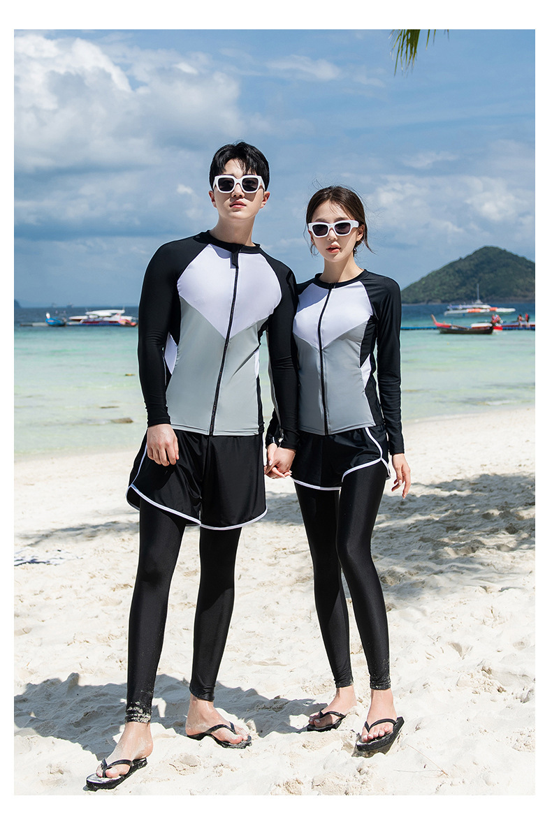 새로운 남성과 여성의 수영복 스플릿 긴팔 바지 정장 패션 컬러 매칭 잠수복 서핑 비치 약속 9131