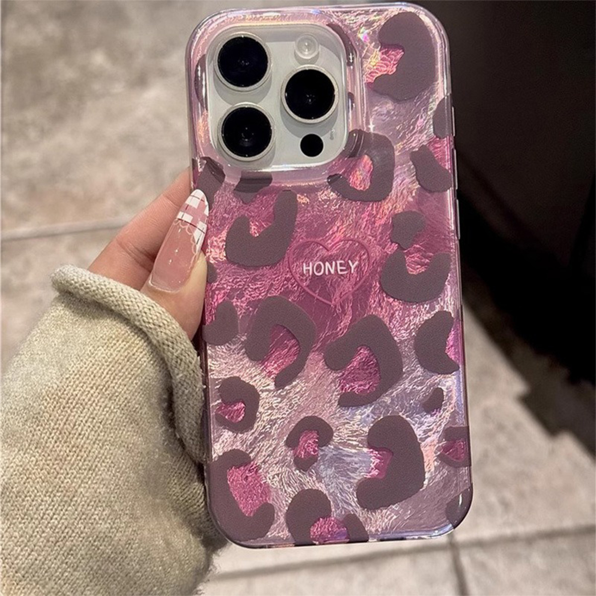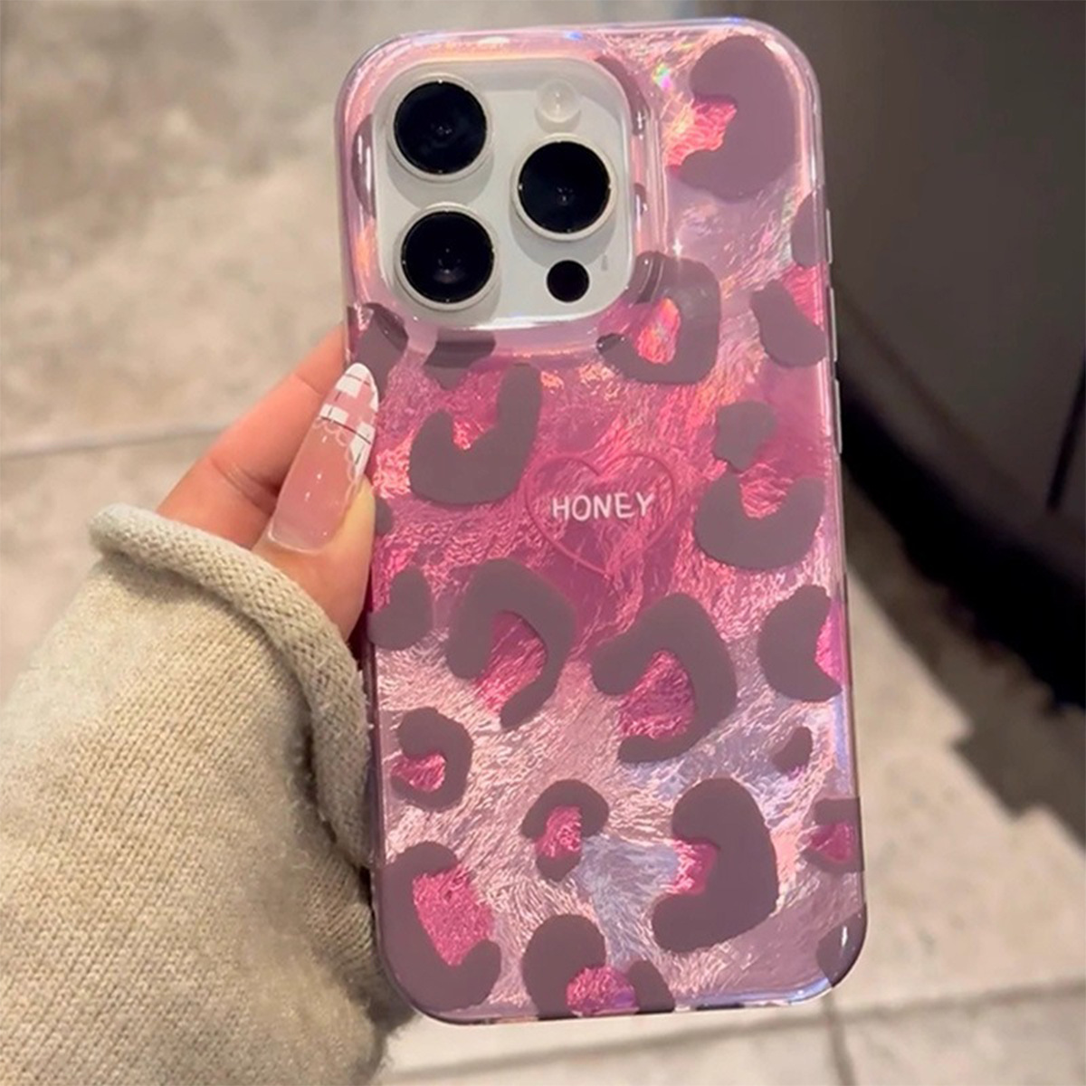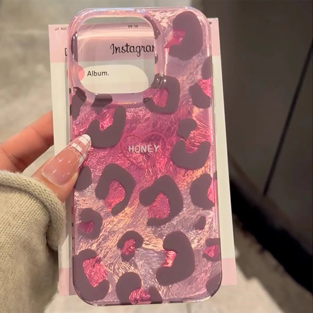 큰 구멍 소용돌이 주석 종이 인쇄 핑크 레오파드 무늬 전화 케이스 아이폰 14Pro 아이폰 케이스