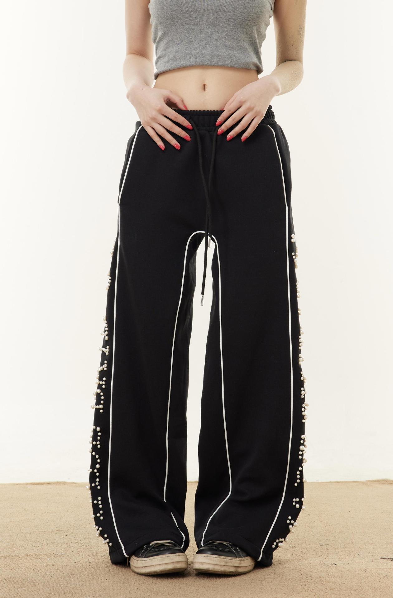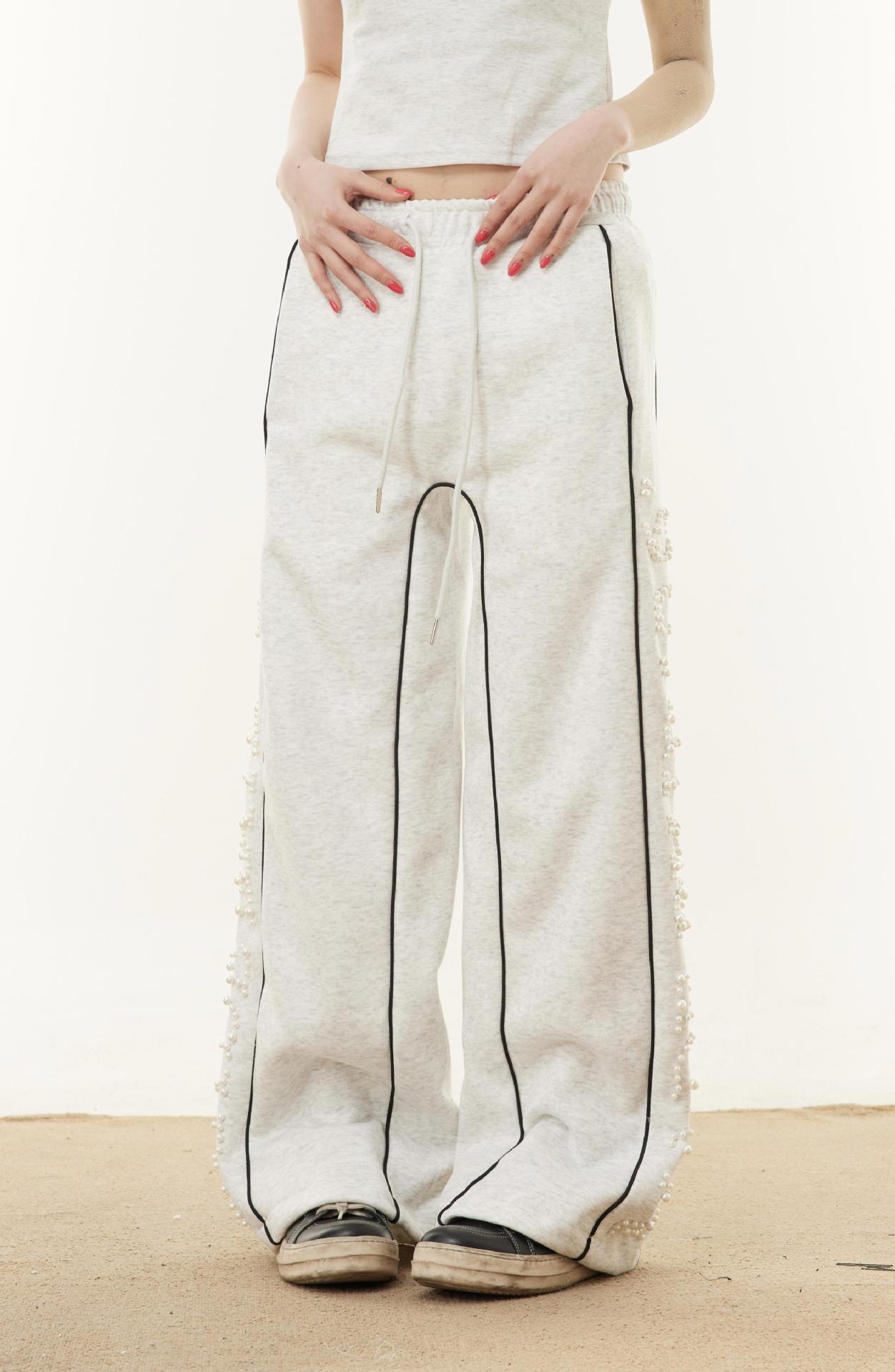 아메리칸 스타일 하이 스트리트 링 레터 캐주얼 게으른 스타일 바지 남녀 스트리트 댄스 패션 브랜드 수직 커플 스트레이트 레그 와이드 레그 팬츠스토어 가기