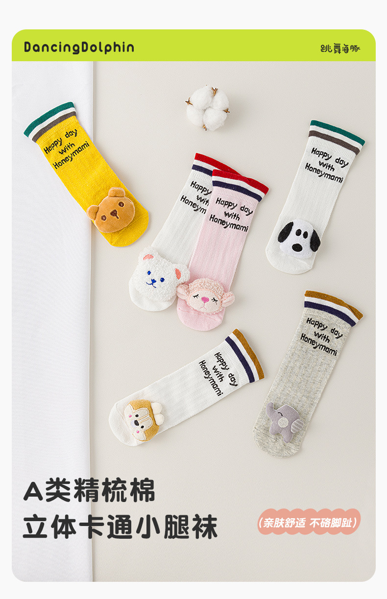 아기 양말 여름 얇은 소년과 소녀 통기성 메쉬 여름 어린이 만화 중간 길이면 양말