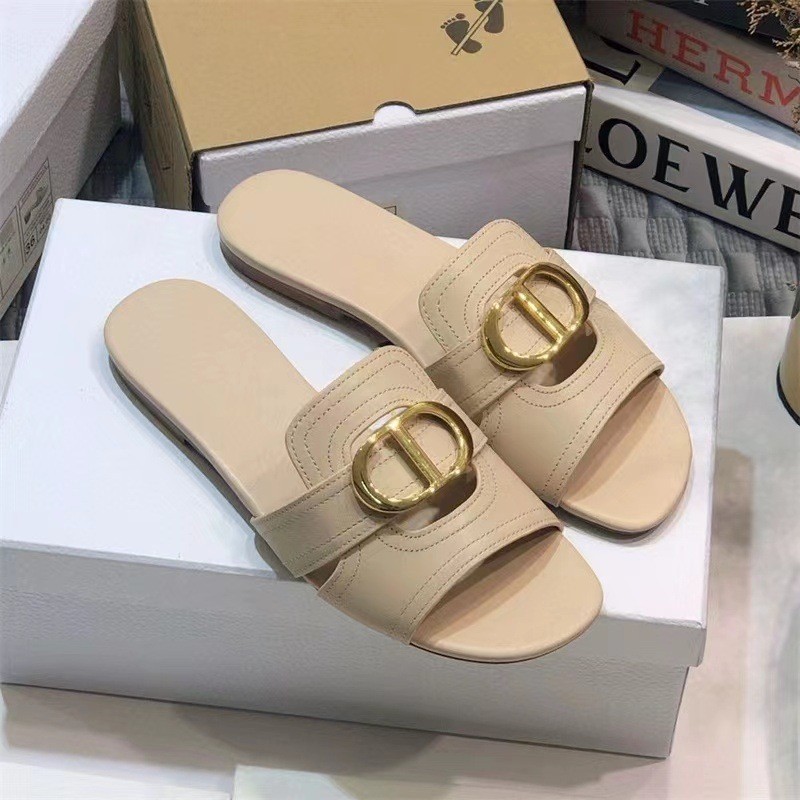 하이 버전 D-버튼 라운드 발가락 플랫 슬리퍼 25 새로운 스타일 의상 올 매치 캐주얼 오픈 발가락 비치 슬리퍼스토어 가기