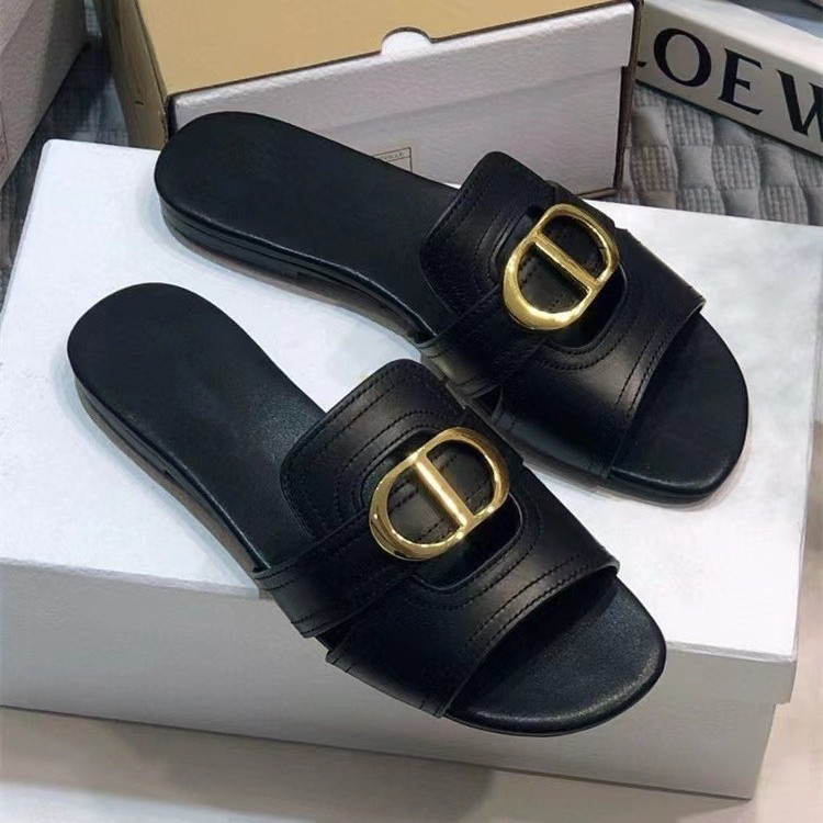 하이 버전 D-버튼 라운드 발가락 플랫 슬리퍼 25 새로운 스타일 의상 올 매치 캐주얼 오픈 발가락 비치 슬리퍼