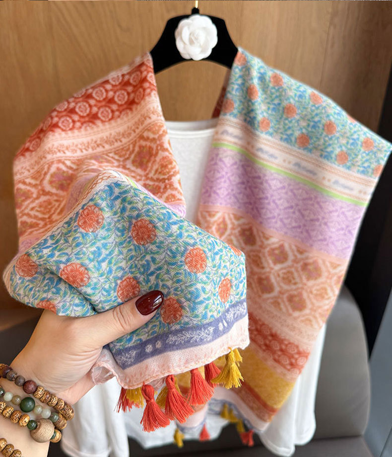 2025 봄과 여름 새로운 무지개 민족 스타일 면화와 리넨 실크 스카프 여성 어머니 우아한 통근 에어컨 룸 목도리 패션