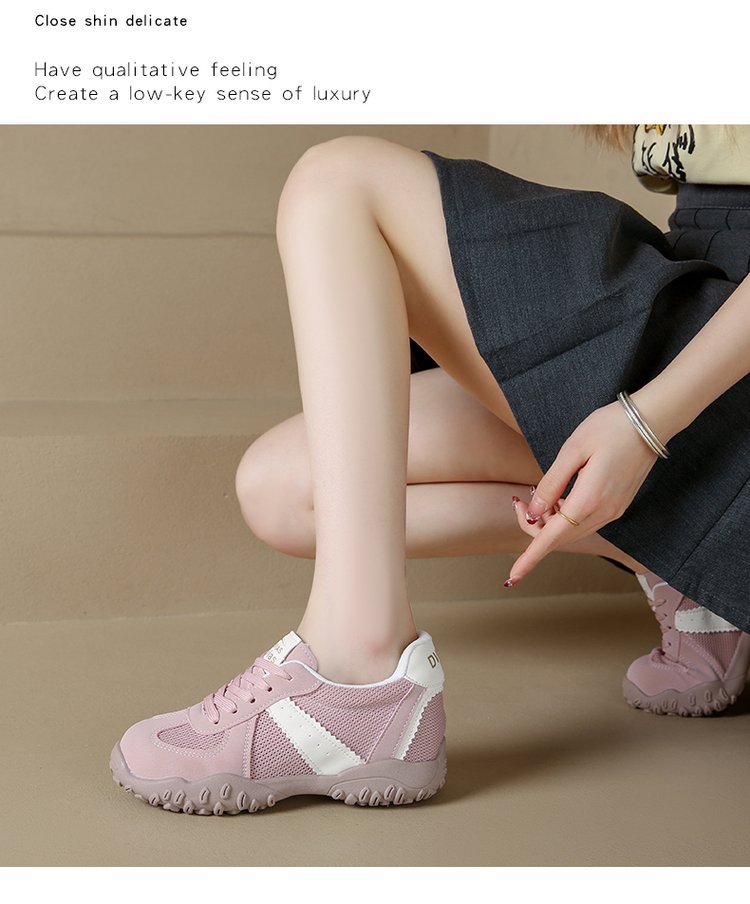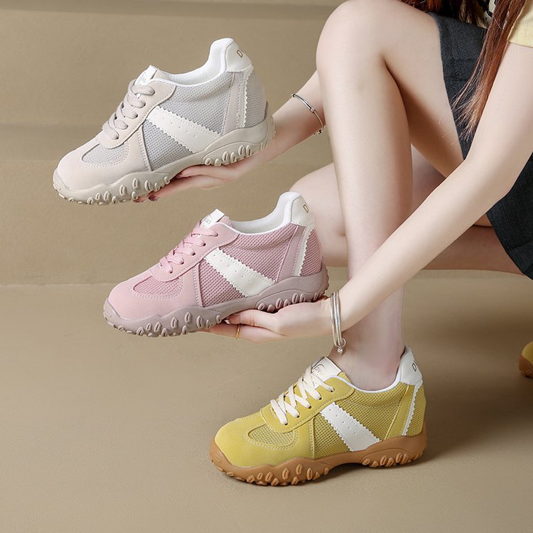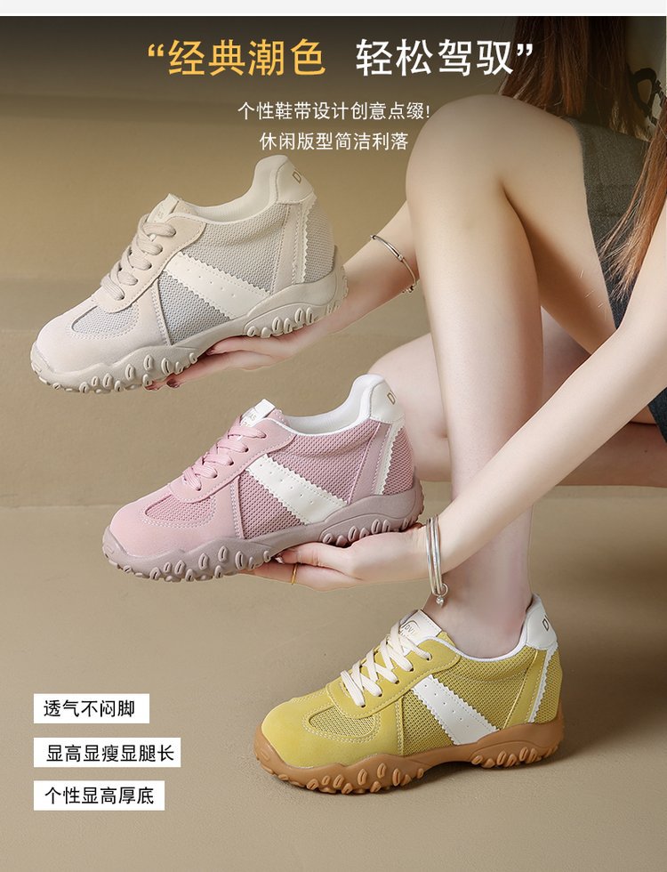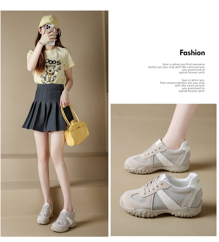 [왕샤오두] 해피 플라워 로드 ● 높이 6cm ~ 보이지 않는 다리 당김 바느질 레트로 포레스트 검프 훈련 캐주얼 신발