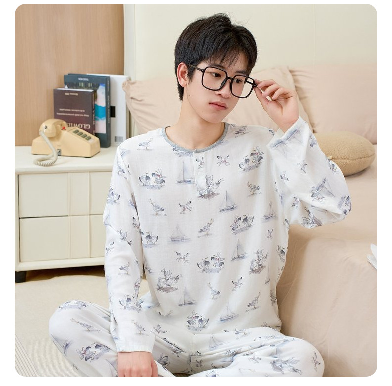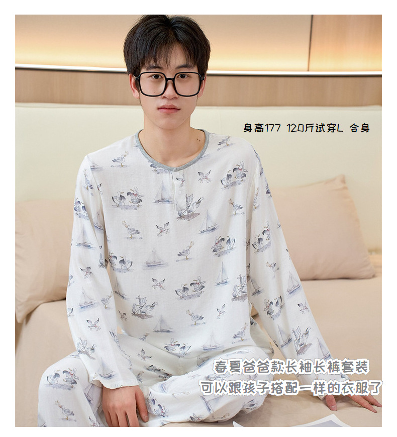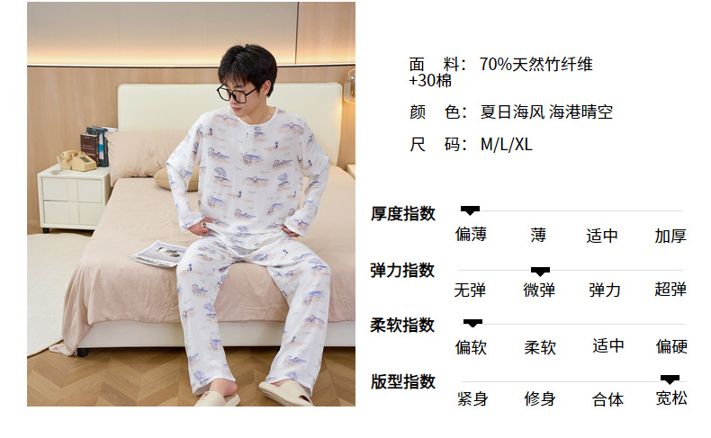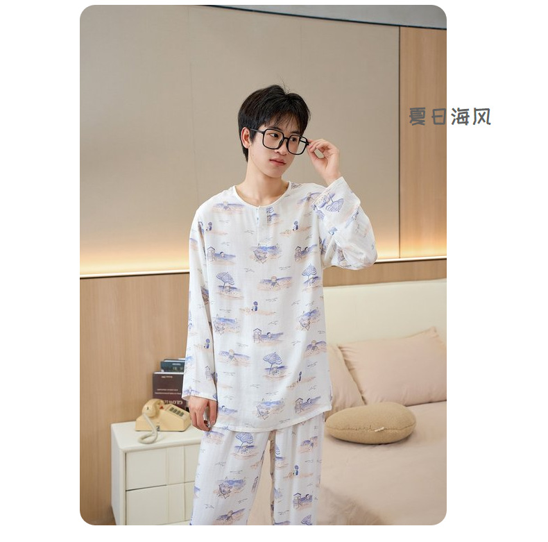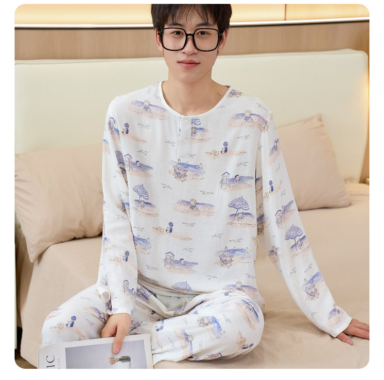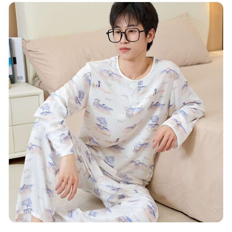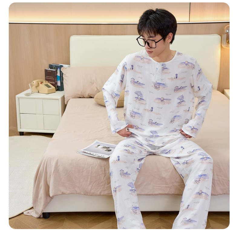 남성용 대나무 면 통기성 및 흡습성 봄 여름 홈웨어 세트 긴 소매 바지 홈 캐주얼 잠옷스토어 가기