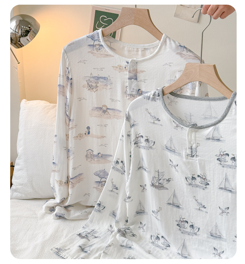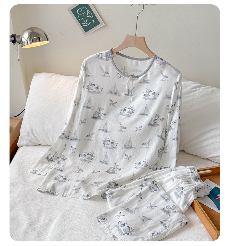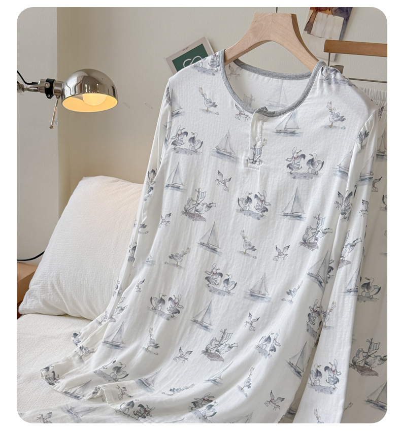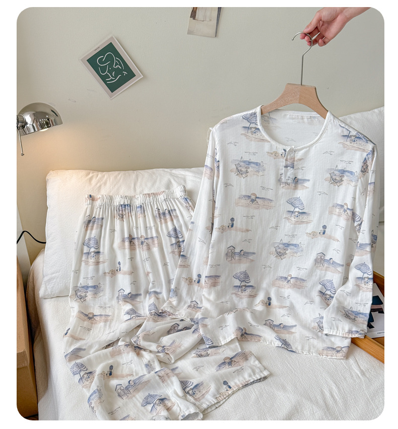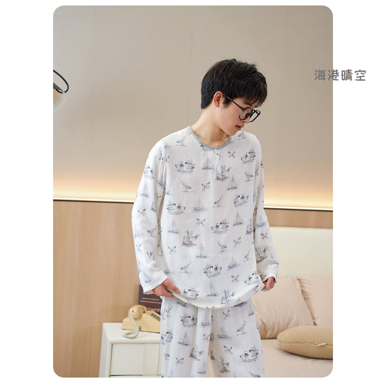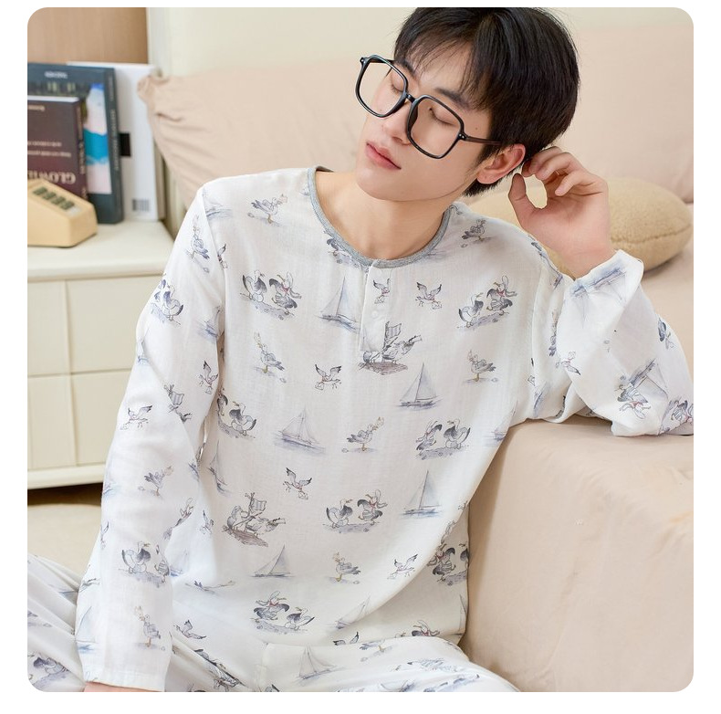 남성용 대나무 면 통기성 및 흡습성 봄 여름 홈웨어 세트 긴 소매 바지 홈 캐주얼 잠옷스토어 가기
