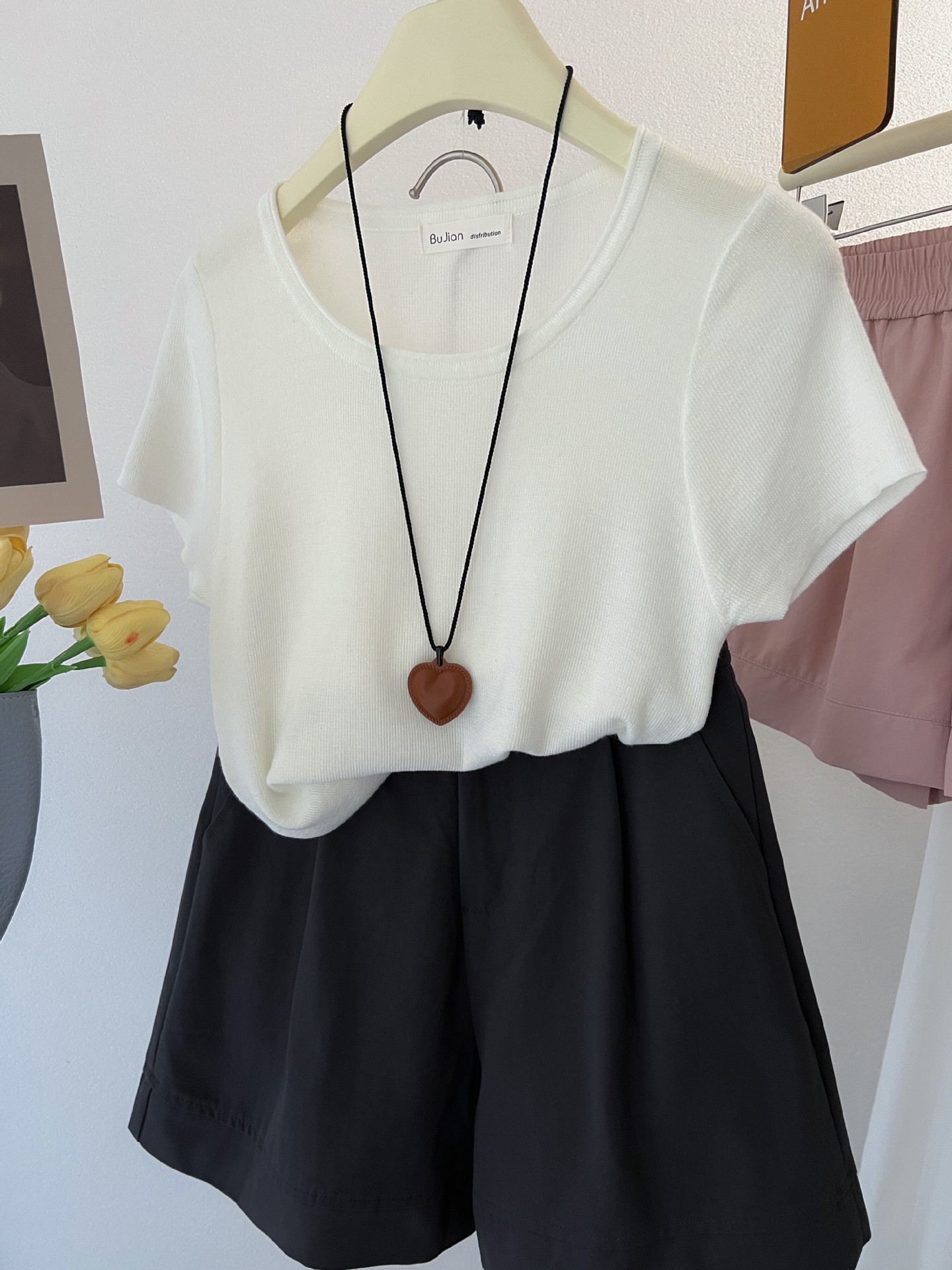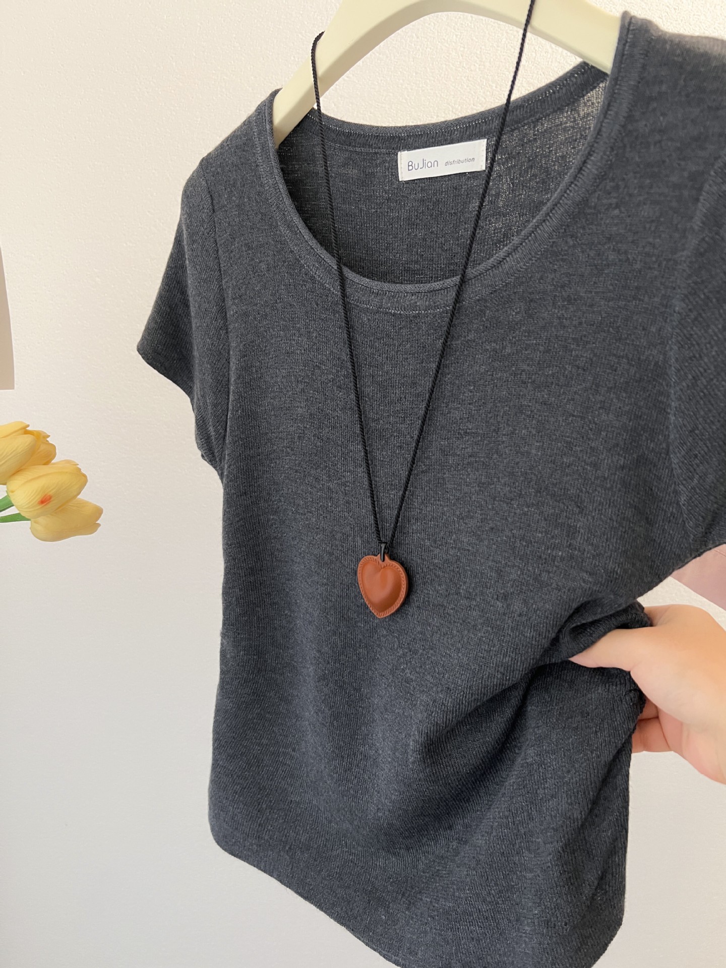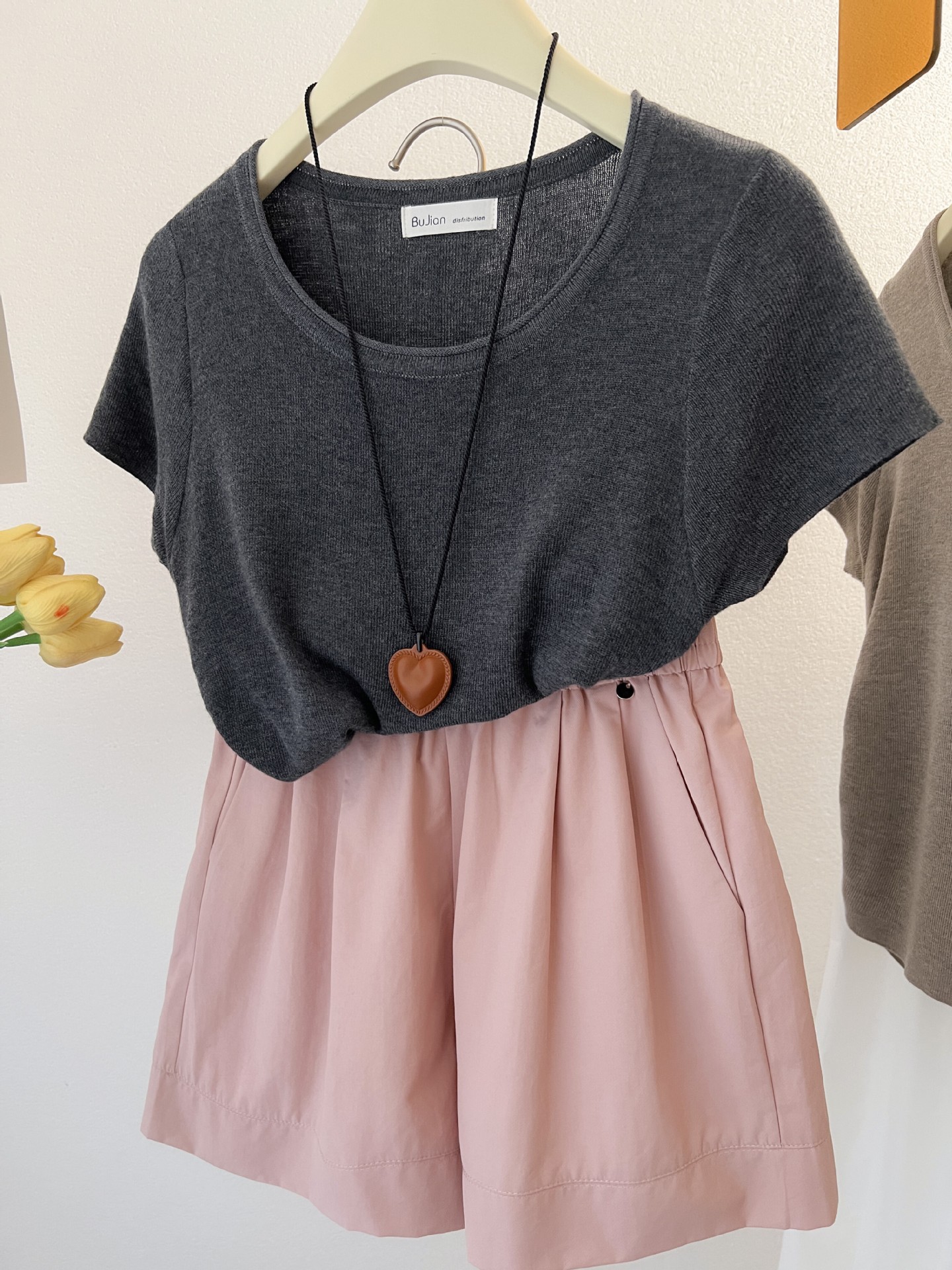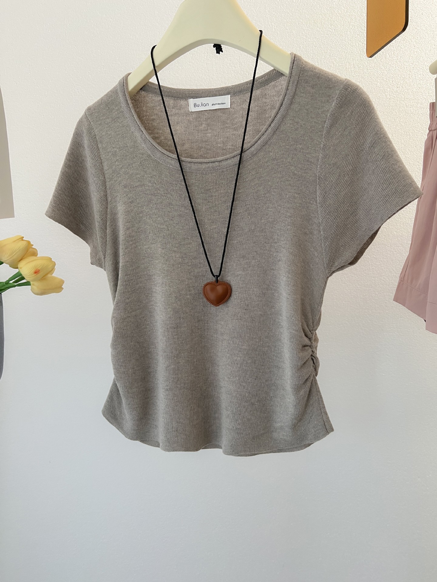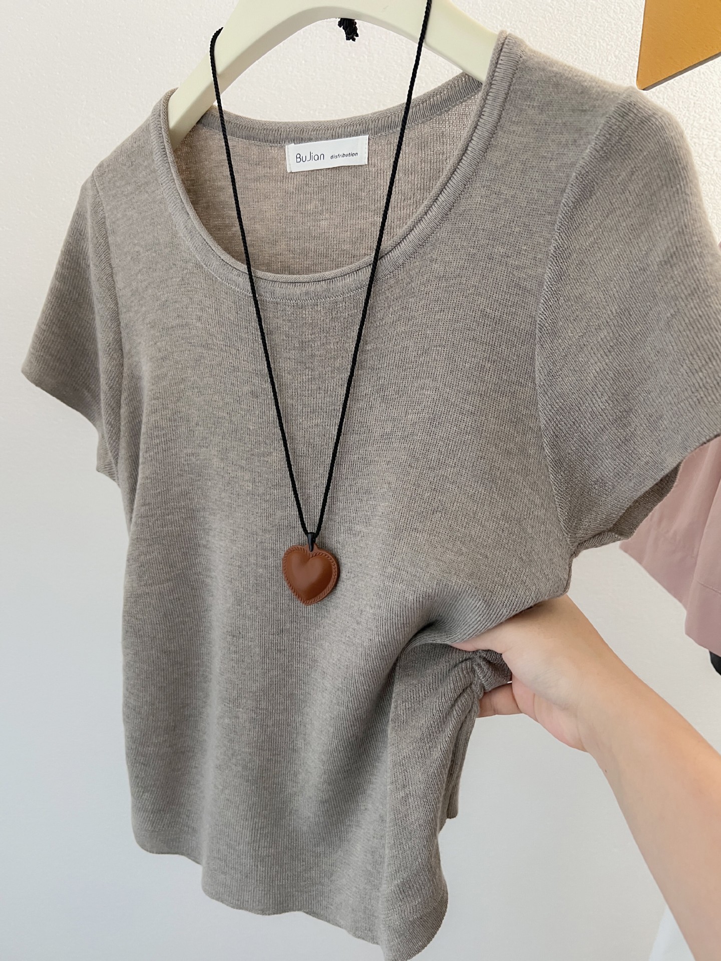 프랑스 스타일 아이스 실크 플라잉 슬리브 반팔 어깨 티셔츠 작은 슬림 핏 타이트 허리 짧은 니트 탑 얇은 여성 여름스토어 가기