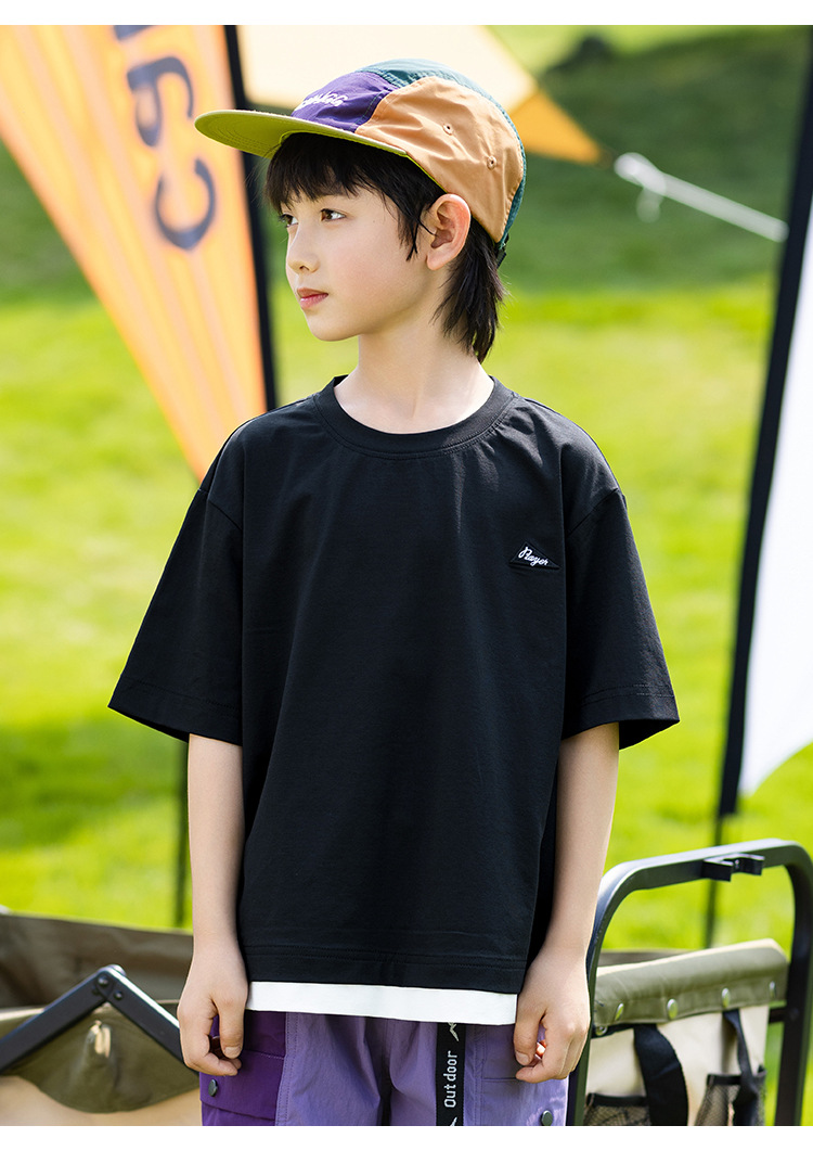 EK 아동복 큰 어린이 간단한 가짜 투피스 다재다능한 반소매 티스토어 가기