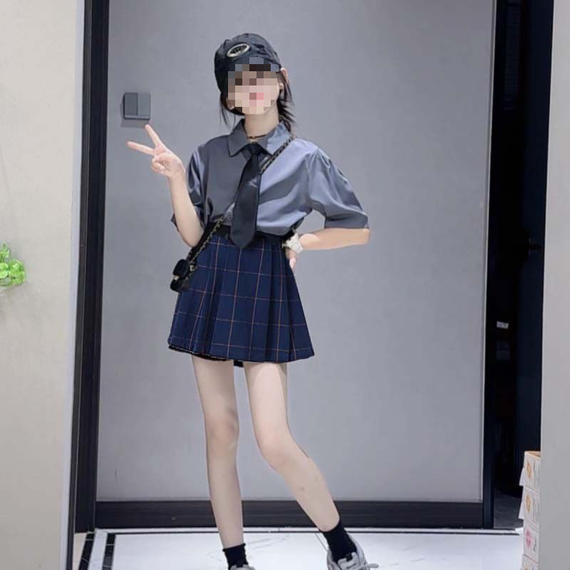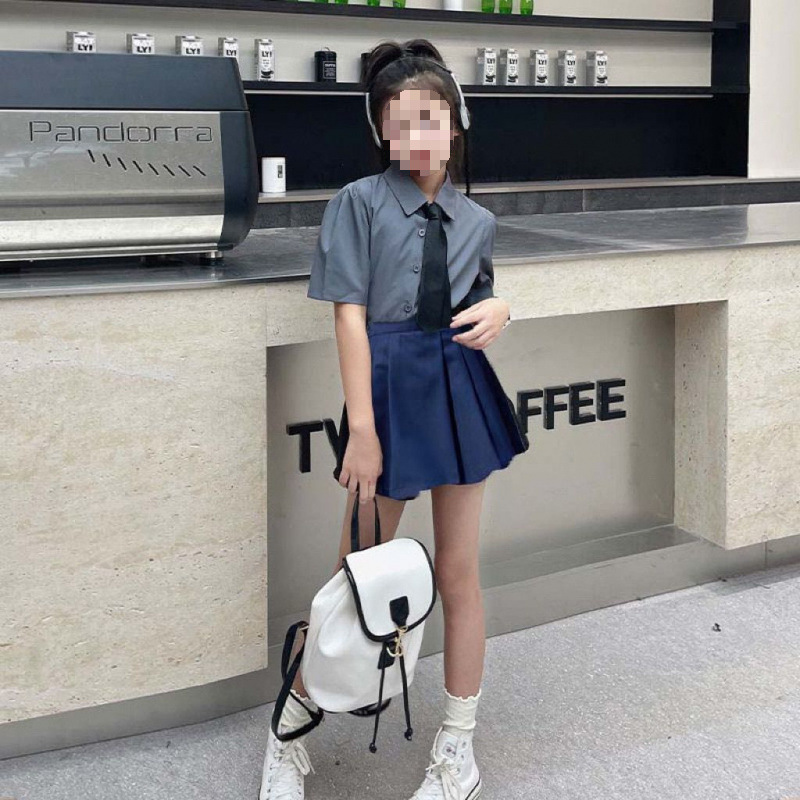 • 아동복 남색 체크 스커트(안전바지 포함)