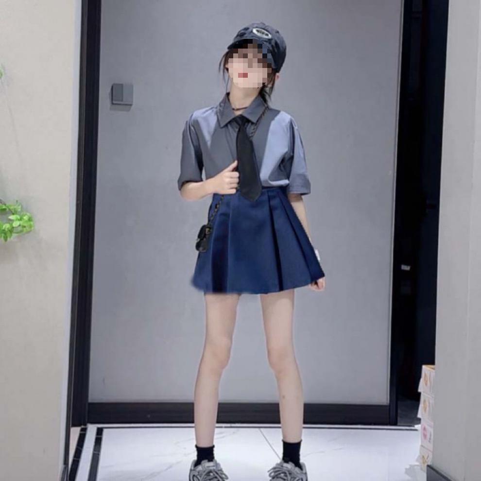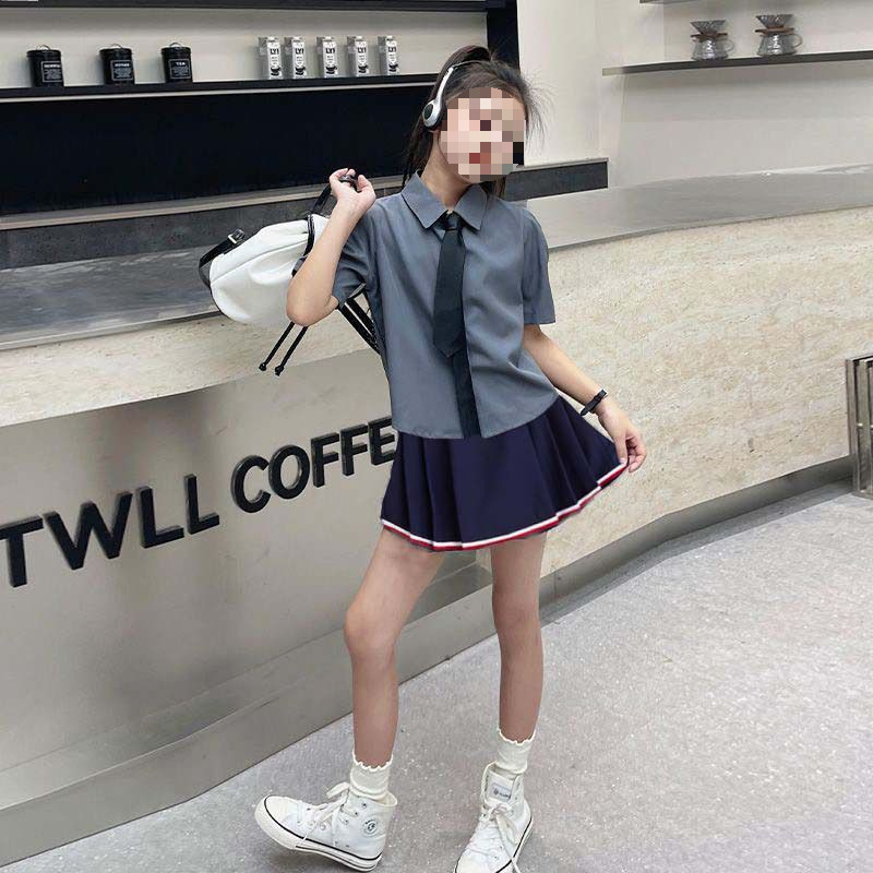 2025년 여름 신작 여아 대학 스타일 서양식 어린이용 안전바지가 달린 중대형 아동용 짧은 치마로 노출 방지