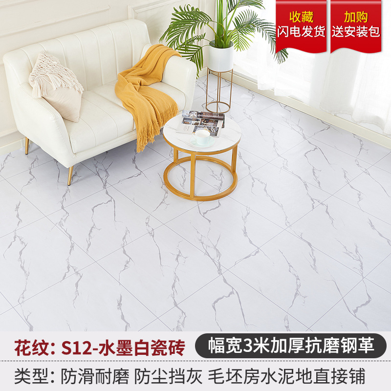 3m 와이드 바닥 가죽 가정용 전체 시트 시멘트 바닥 직접 포장 방수 미끄럼 방지 두꺼운 내마모성 PVC 플라스틱 바닥 매트스토어 가기