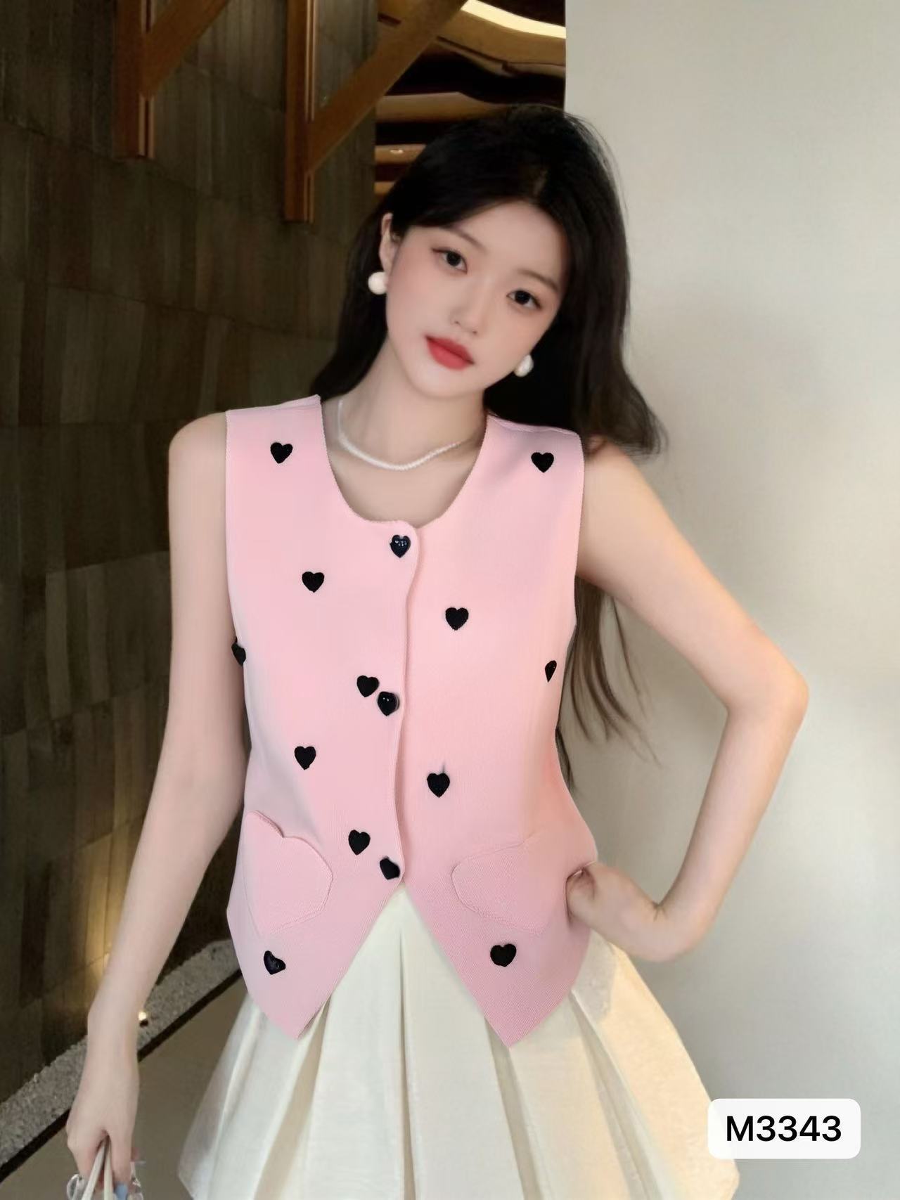 2025 년 여름 새로운 도착 프랑스 스타일 사랑 자수 슬림 핏 조끼 카디건 니트 한국 스타일 민소매 조끼