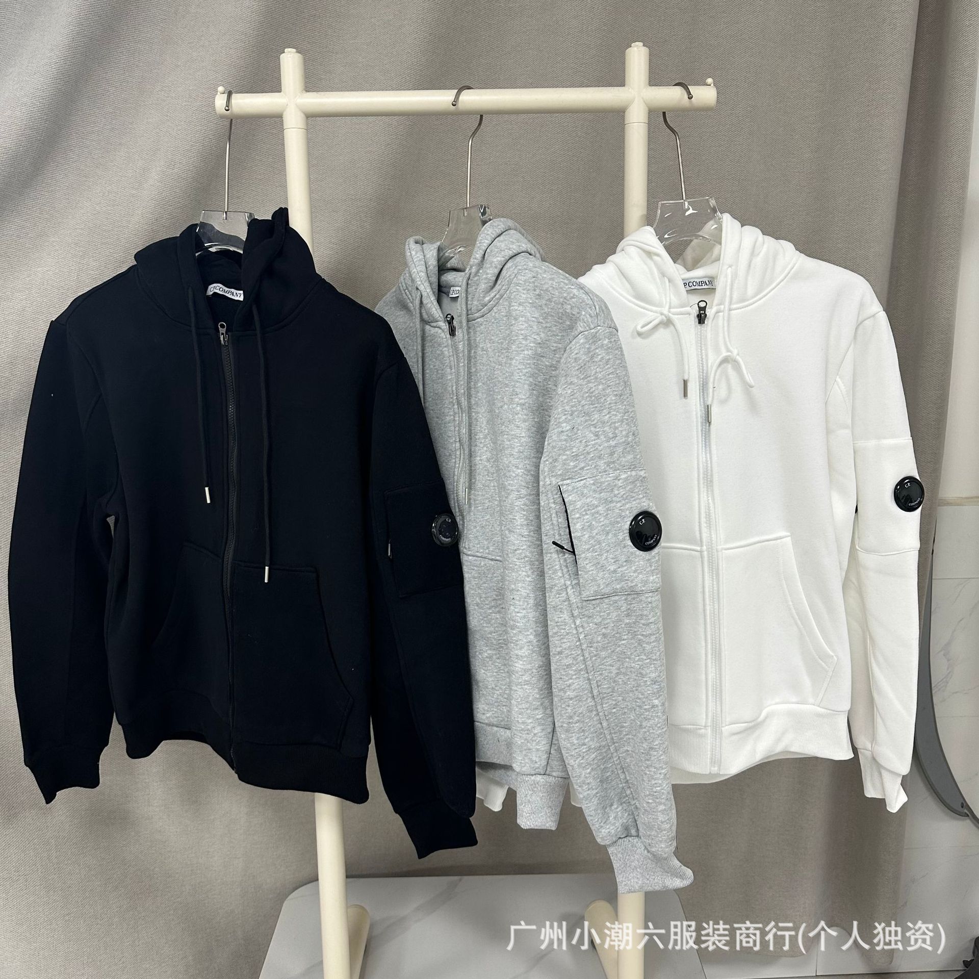 C.P 카디건 기모 후드 스웨터 국경 간 공급 회사 솔리드 컬러 캐주얼 커플 렌즈 배지 재킷스토어 가기