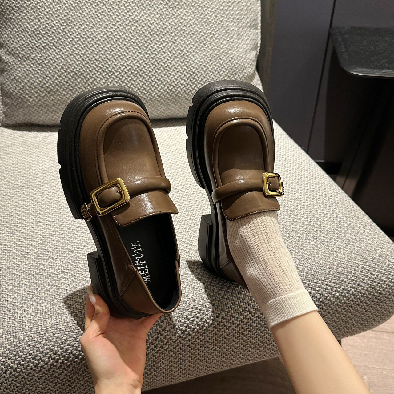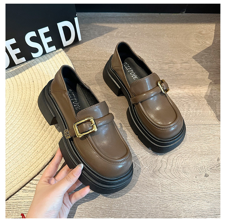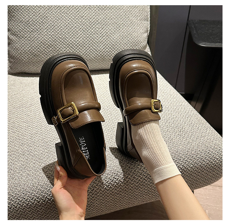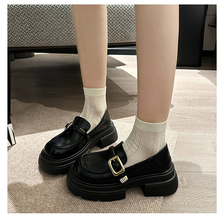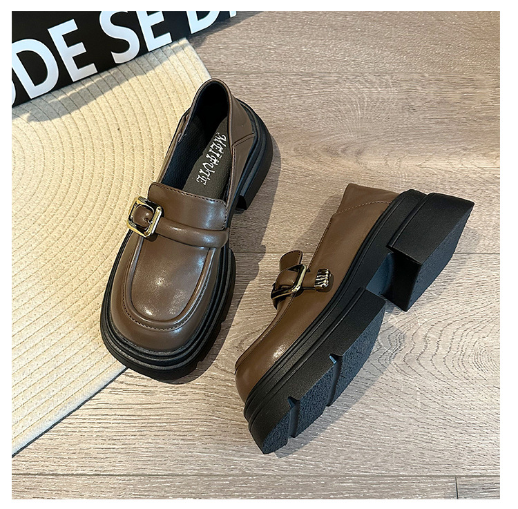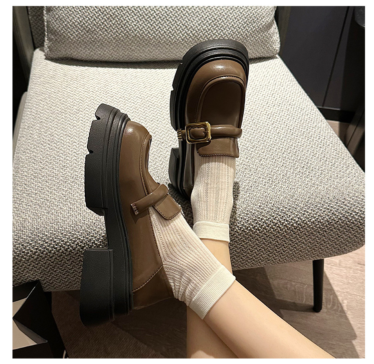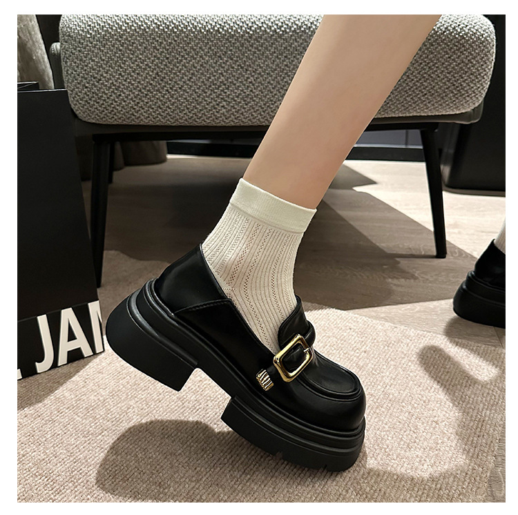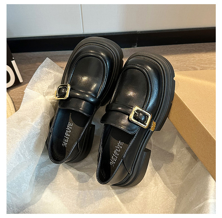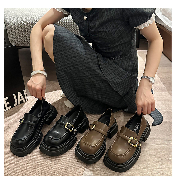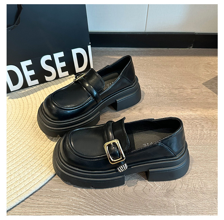 여성을위한 영국 스타일 두꺼운 밑창 작은 가죽 신발 봄, 가을 일본식 신발 2025 새로운 메리 제인 신발 블랙 로퍼스토어 가기