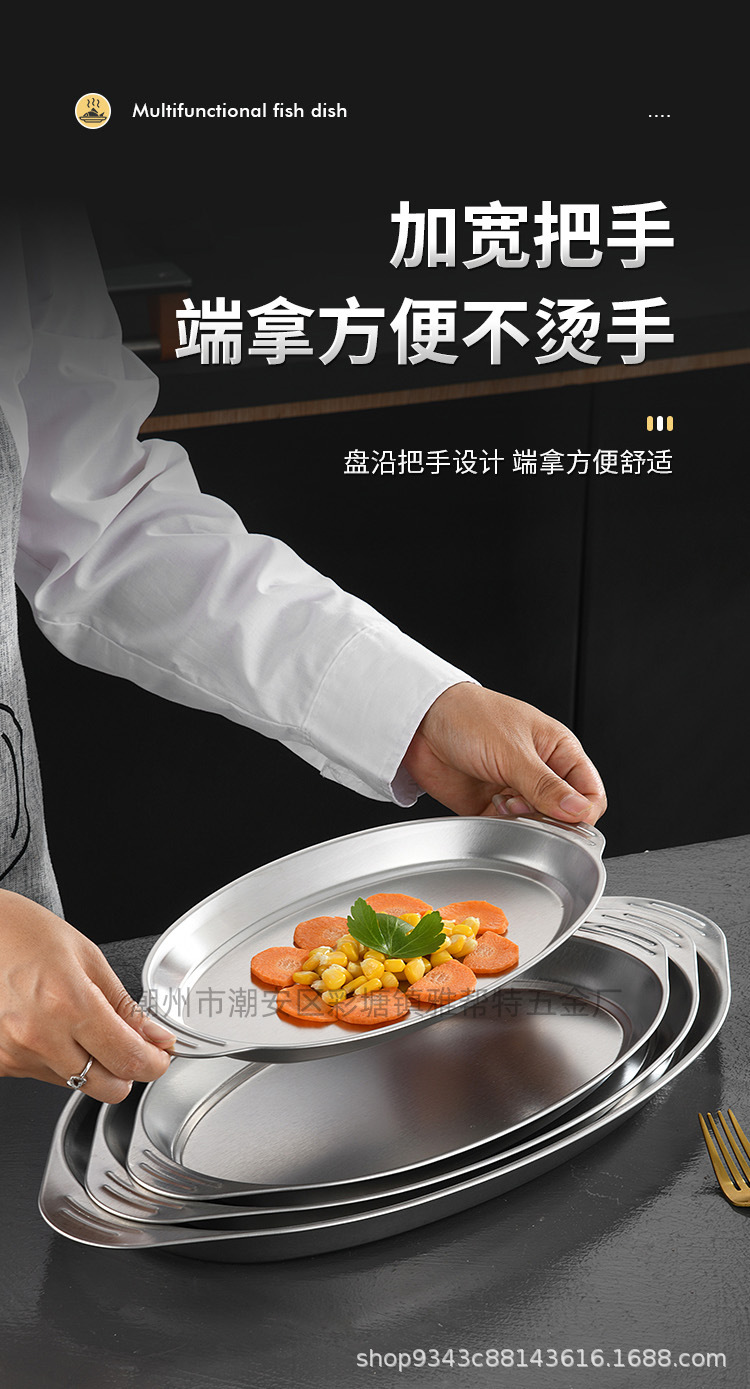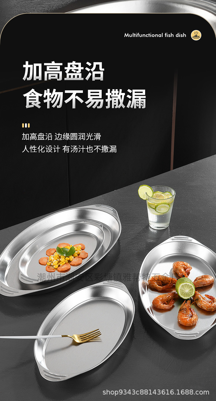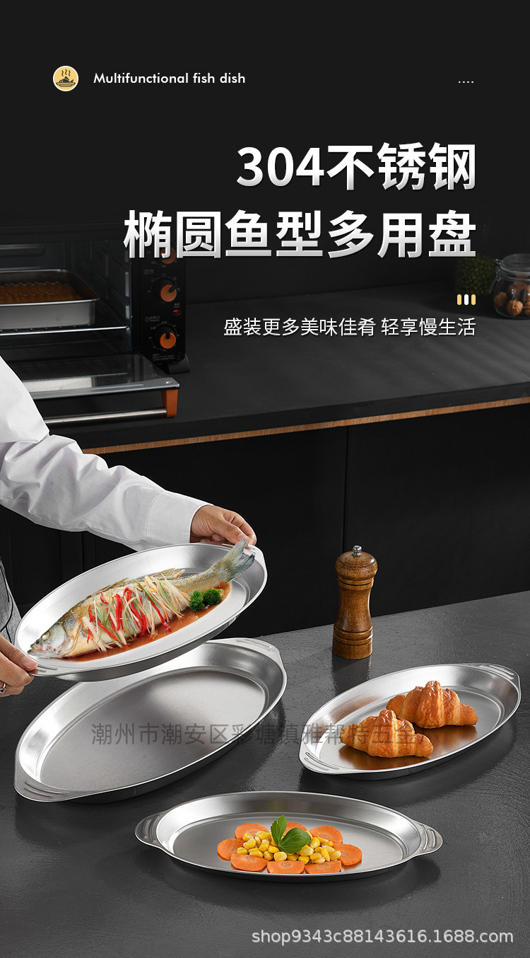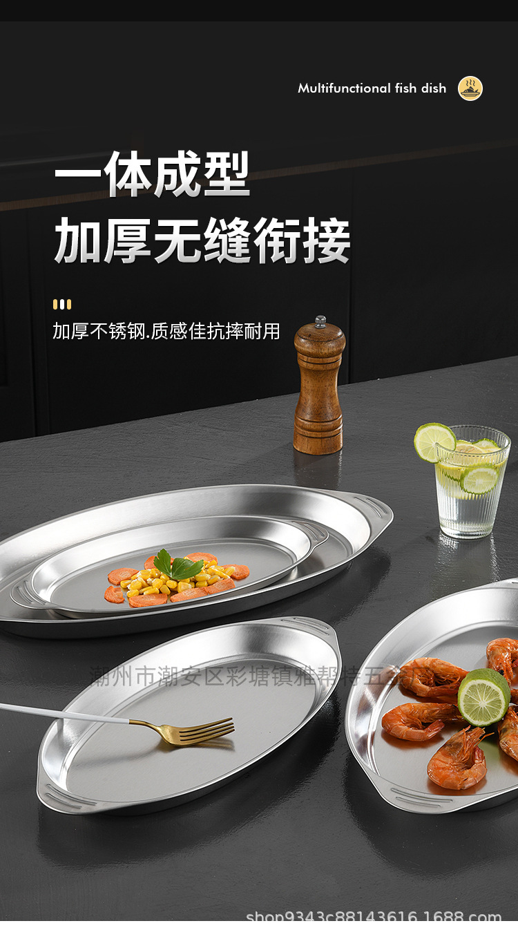 국경을 넘나 드는 스테인레스 스틸 피쉬 플레이트 더블 이어 가정용 타원형 찐 어판 찐 퍼치 플레이트 한국식 스낵 플레이트스토어 가기