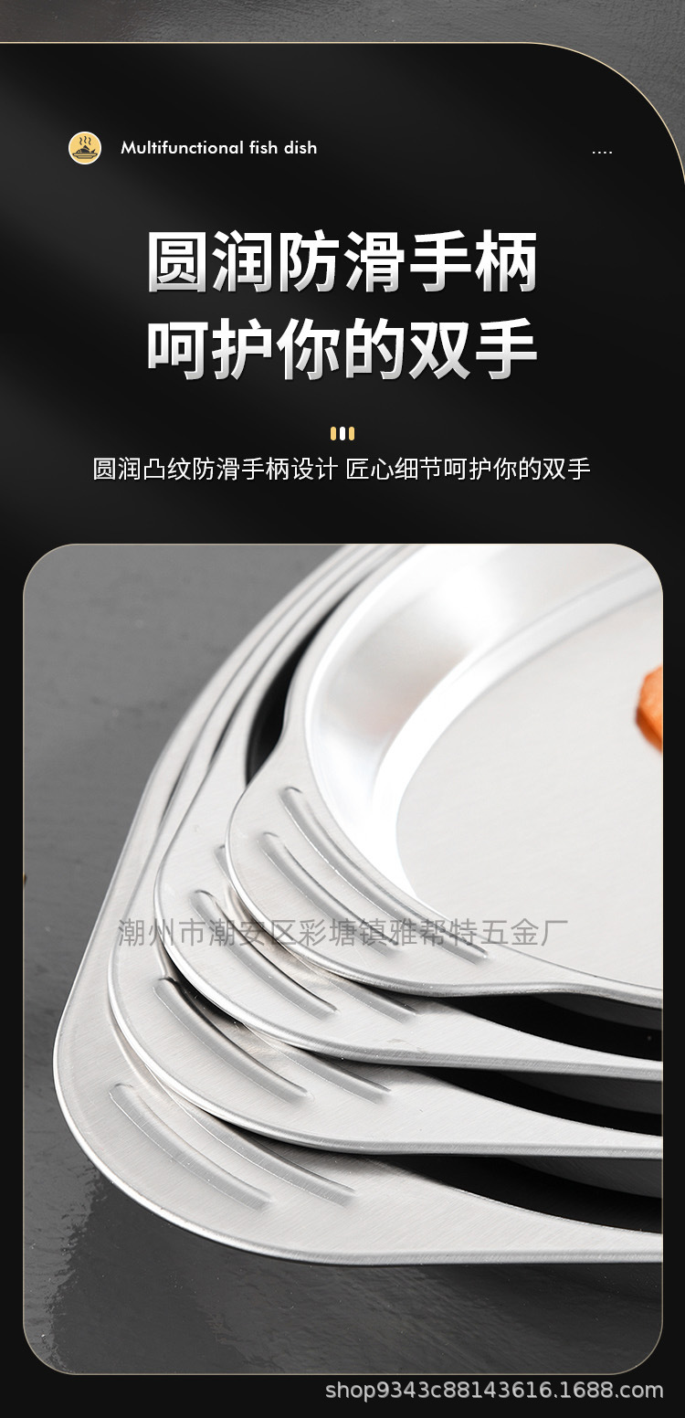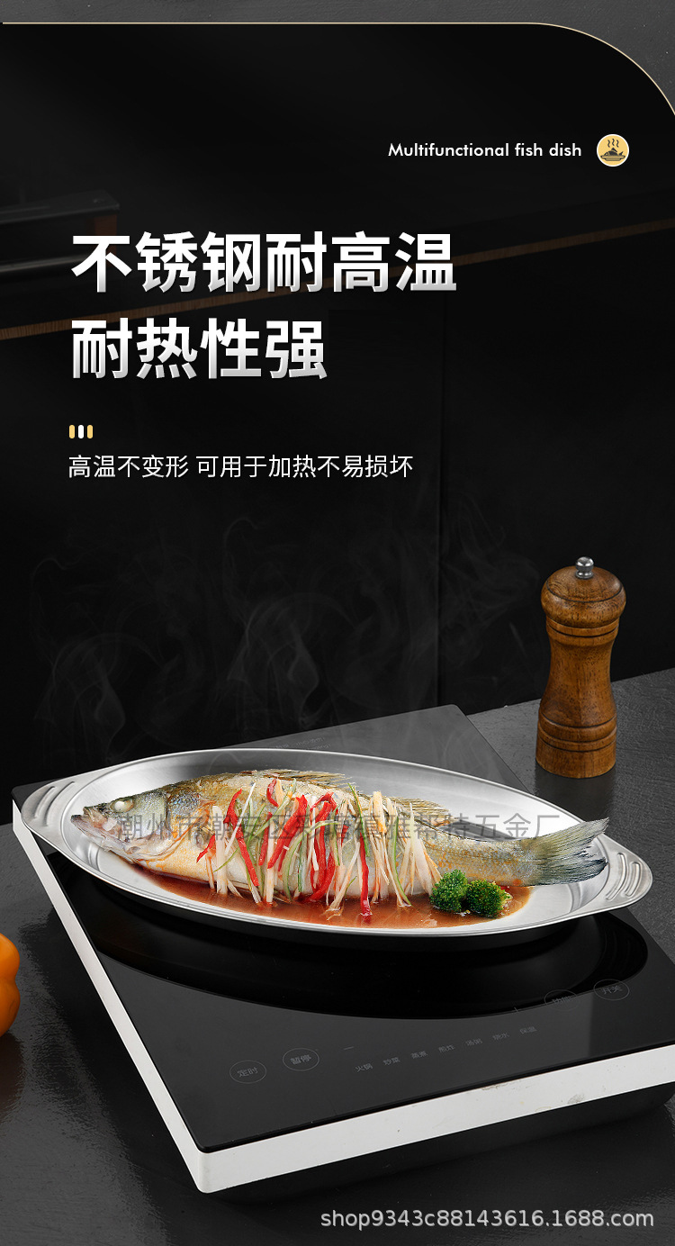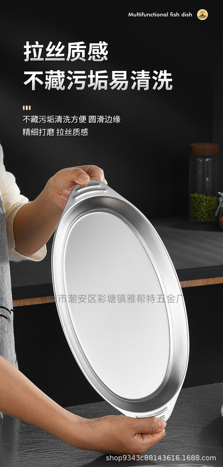 국경을 넘나 드는 스테인레스 스틸 피쉬 플레이트 더블 이어 가정용 타원형 찐 어판 찐 퍼치 플레이트 한국식 스낵 플레이트스토어 가기