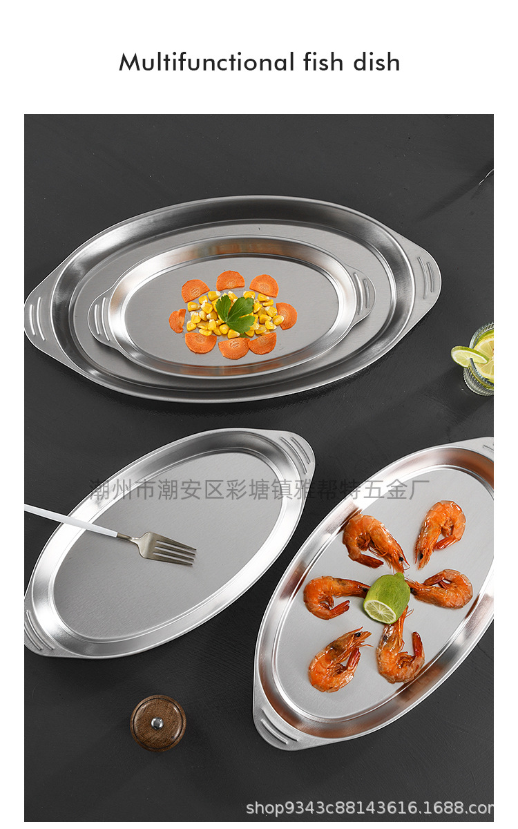 국경을 넘나 드는 스테인레스 스틸 피쉬 플레이트 더블 이어 가정용 타원형 찐 어판 찐 퍼치 플레이트 한국식 스낵 플레이트