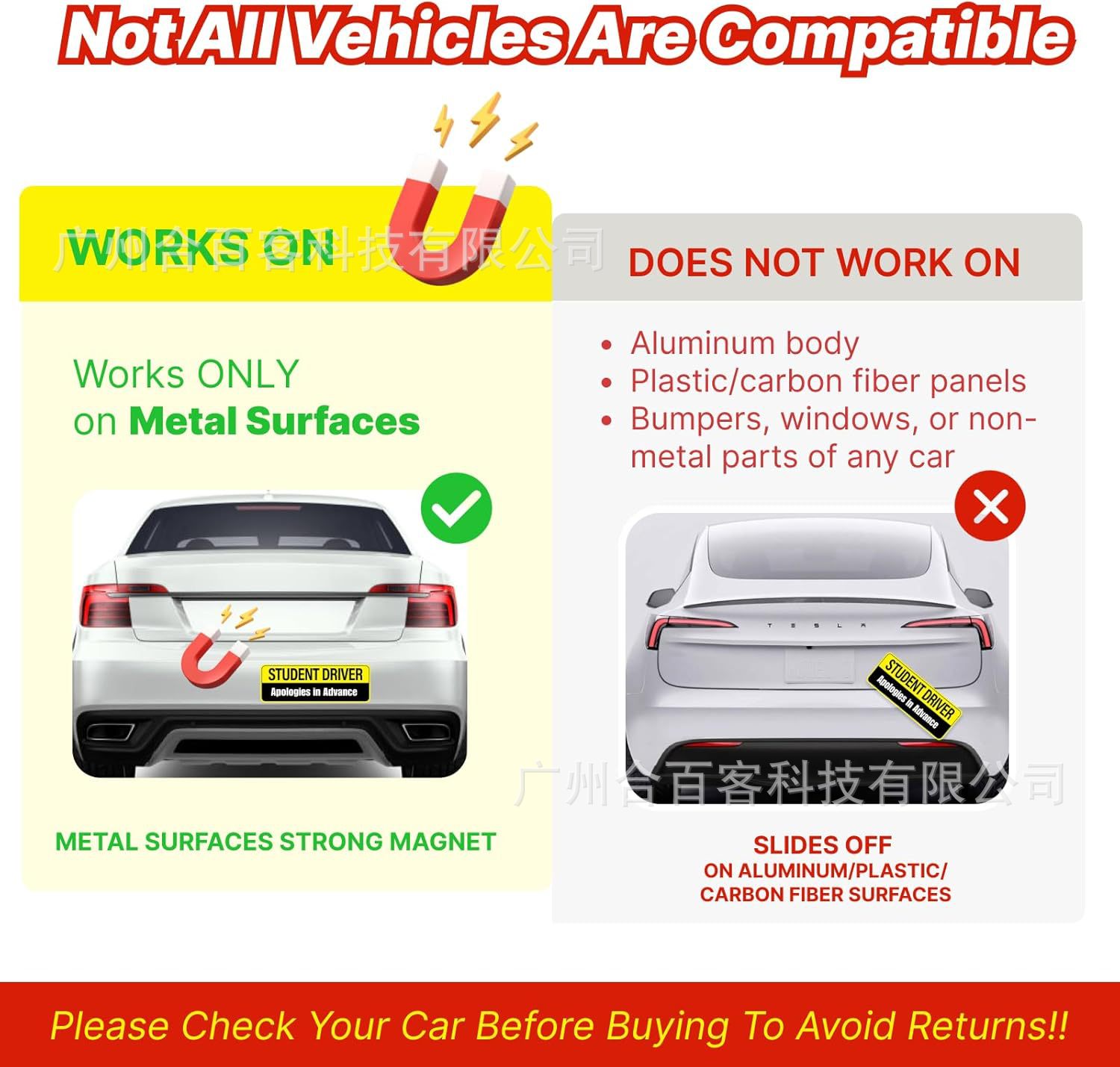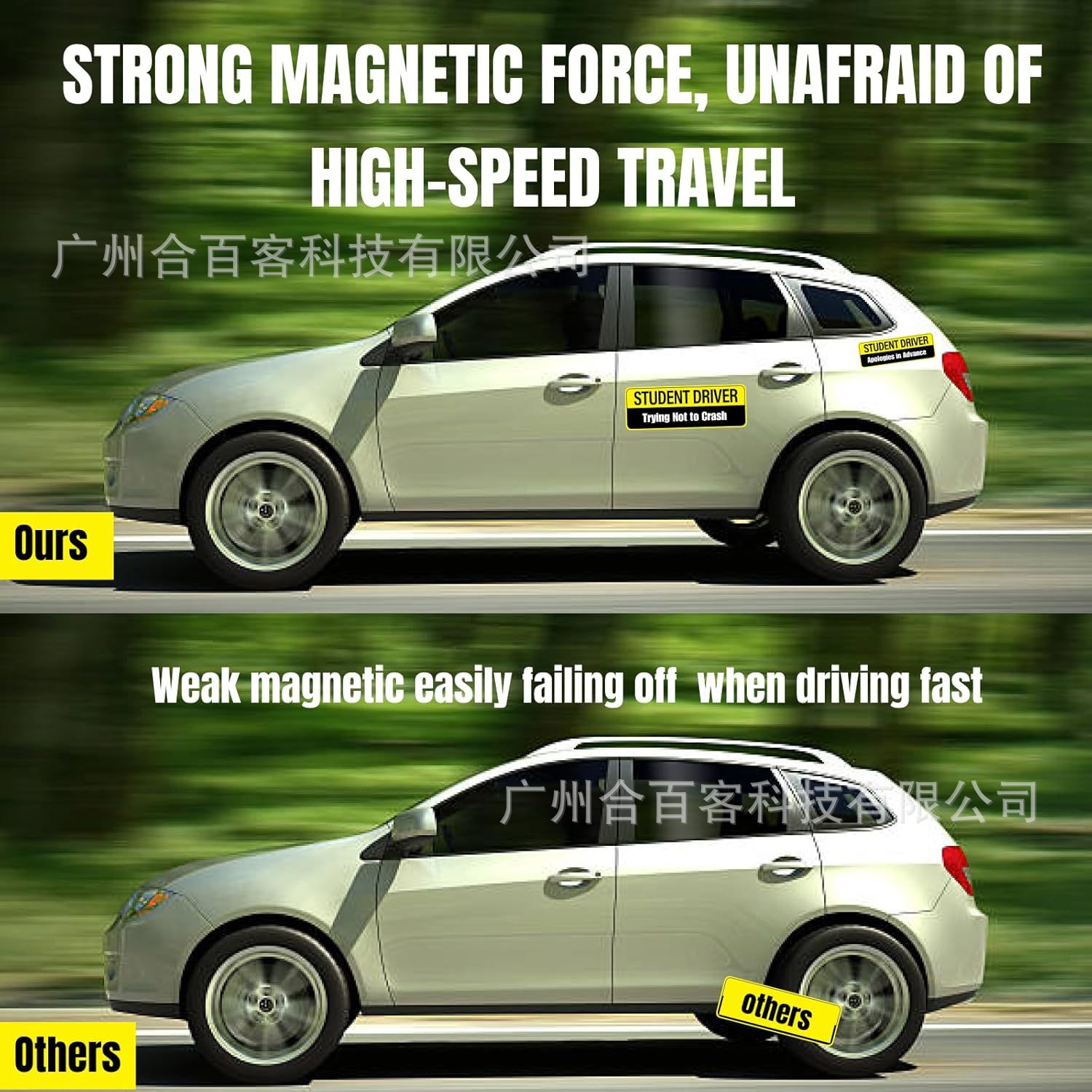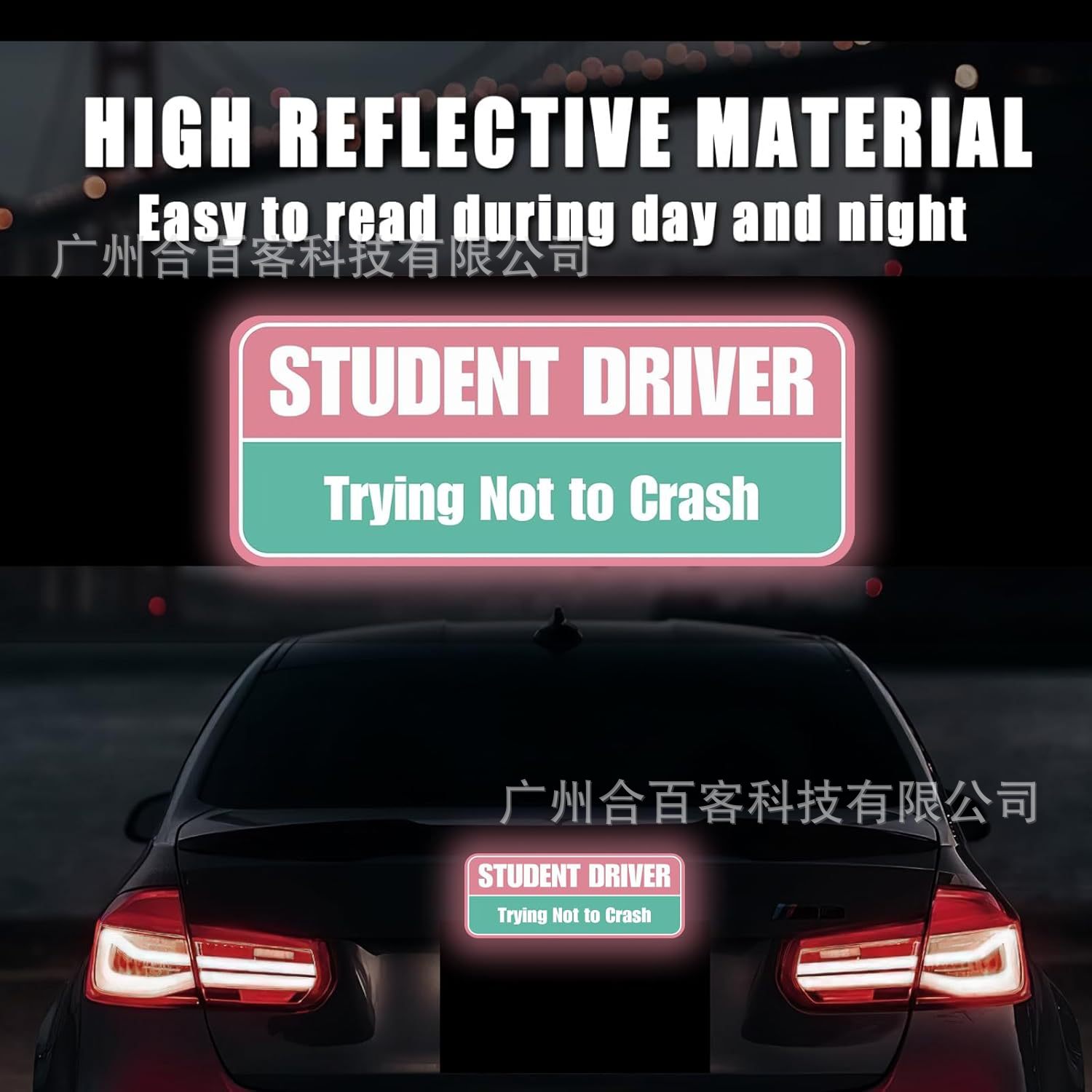 아마존 재미 핑크 초보자 드라이버 마그네틱 자동차 스티커 학생 인턴쉽 반사 자동차 스티커 2 팩