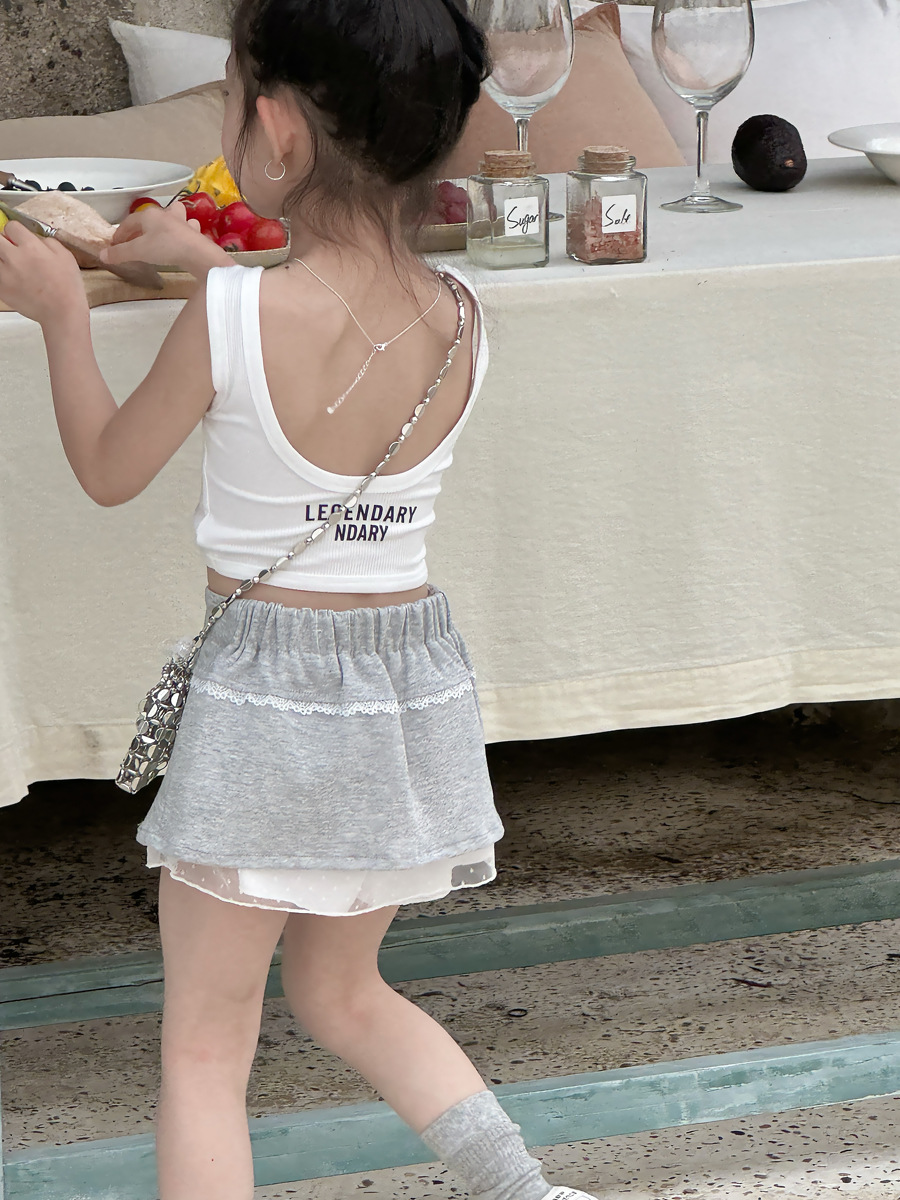 유유 공주 소녀 여름 새로운 한국식 짧은 조끼 아기 소녀 스파이스 소녀 백리스 댄스 조끼 탑스토어 가기